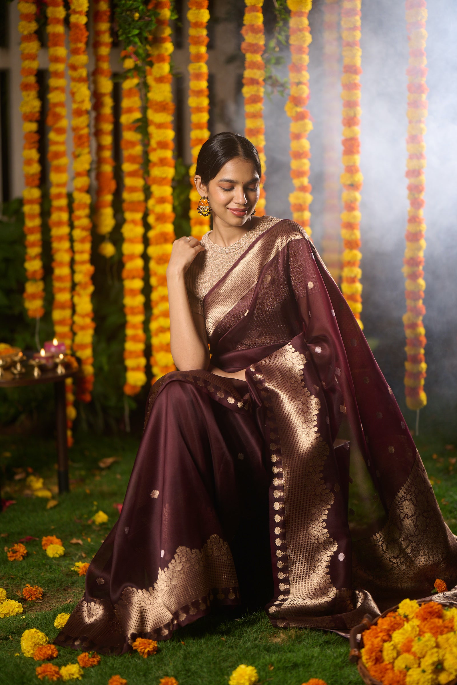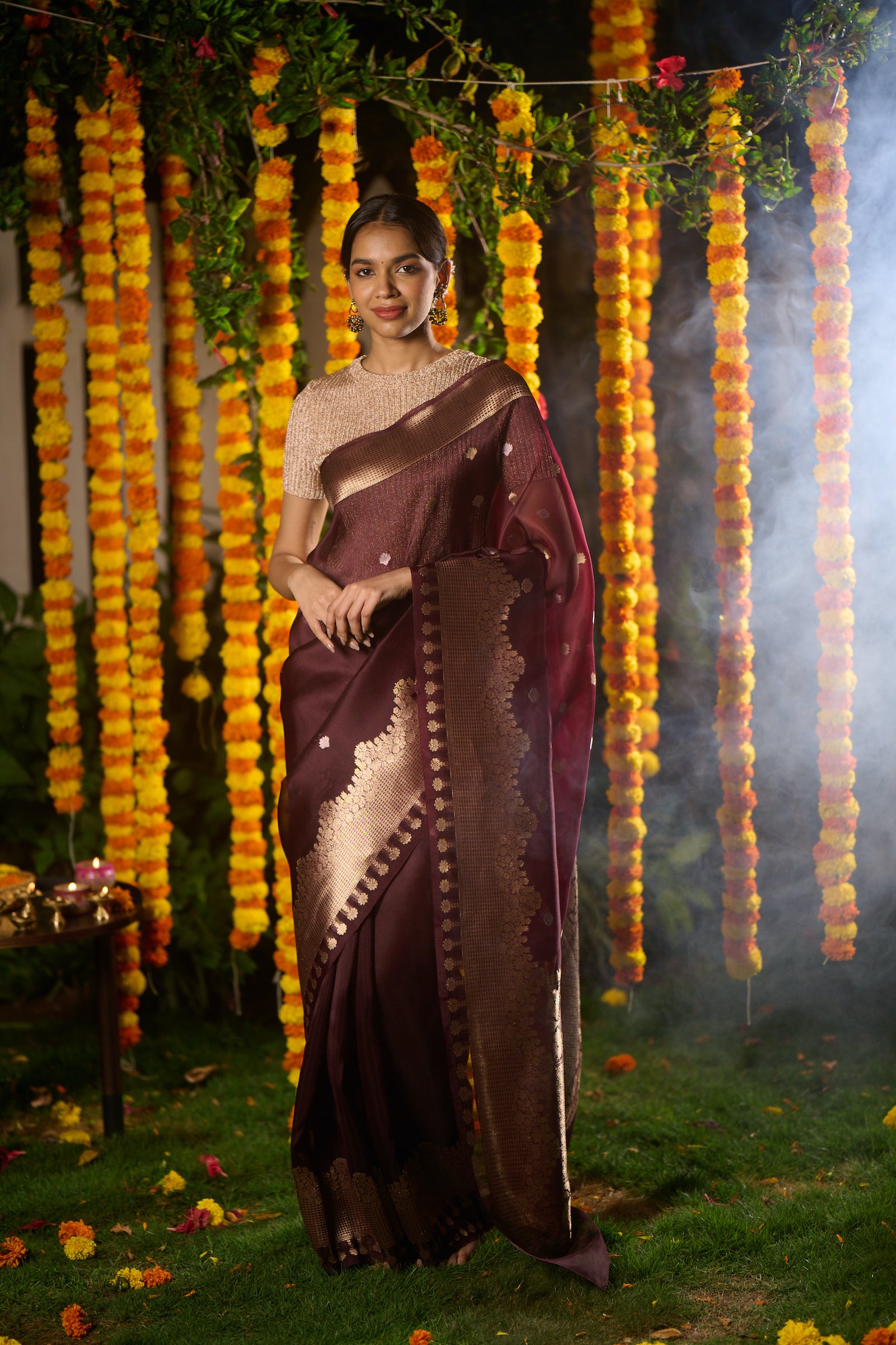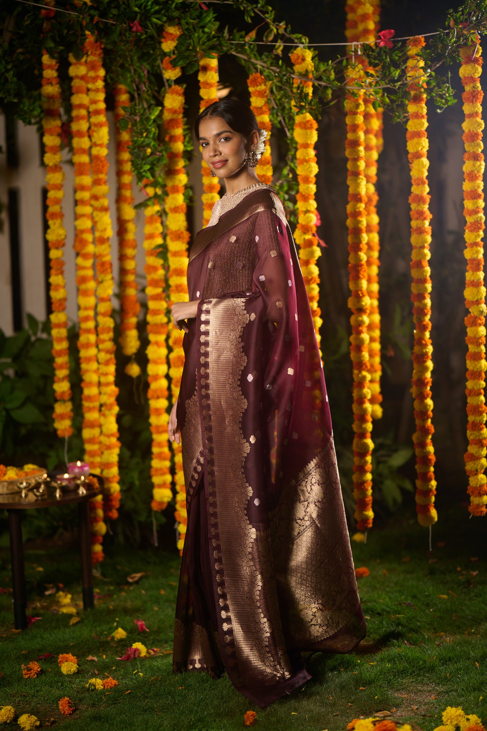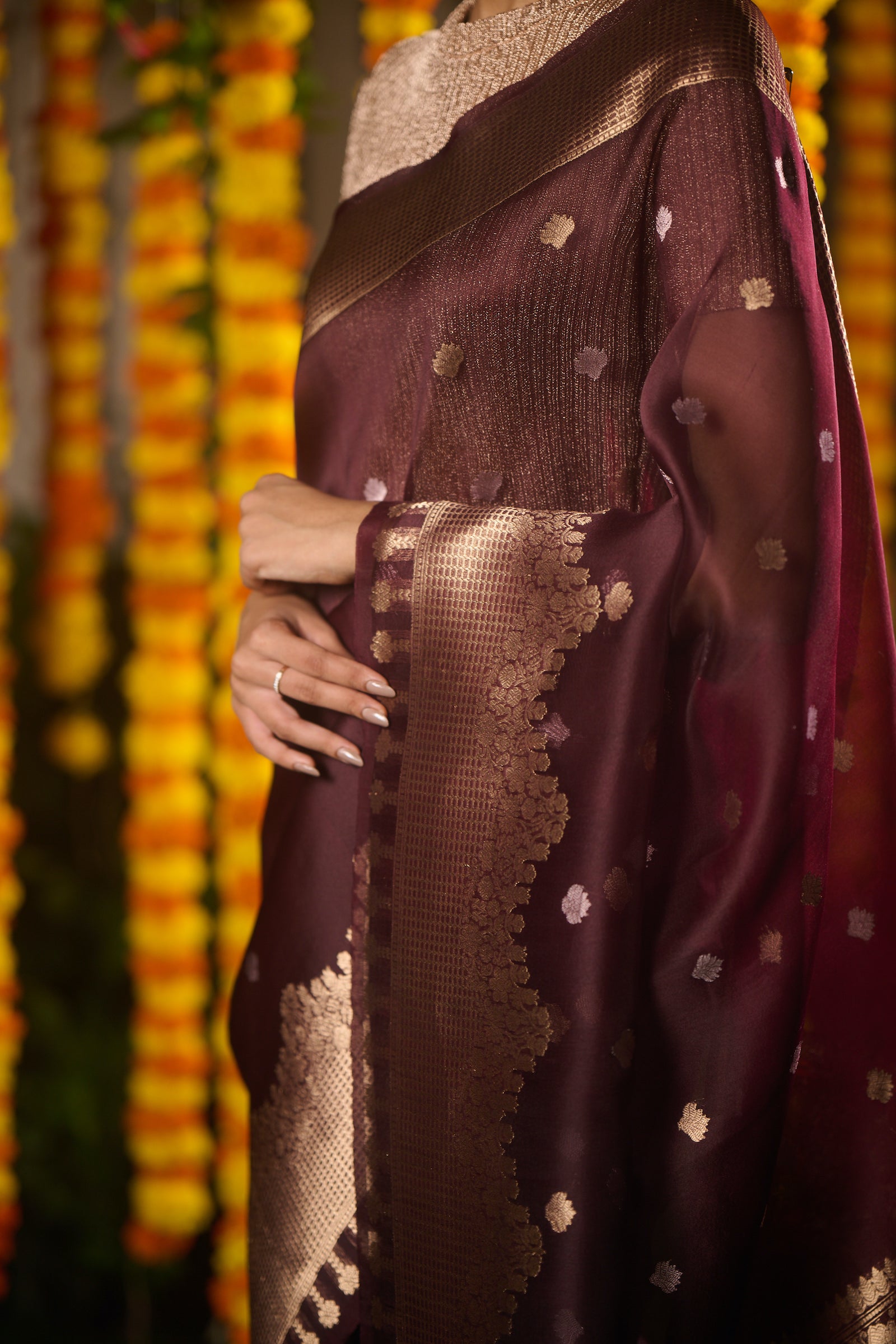 Banarasi organza silk brown saree