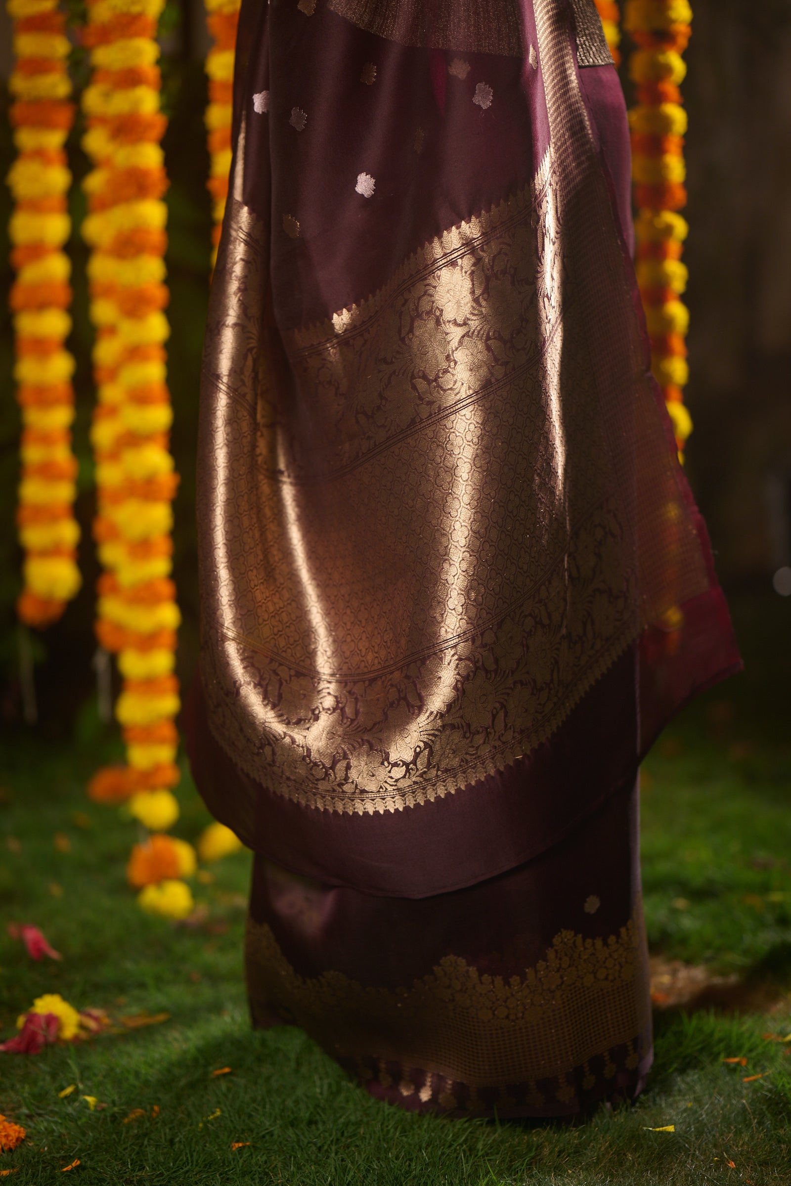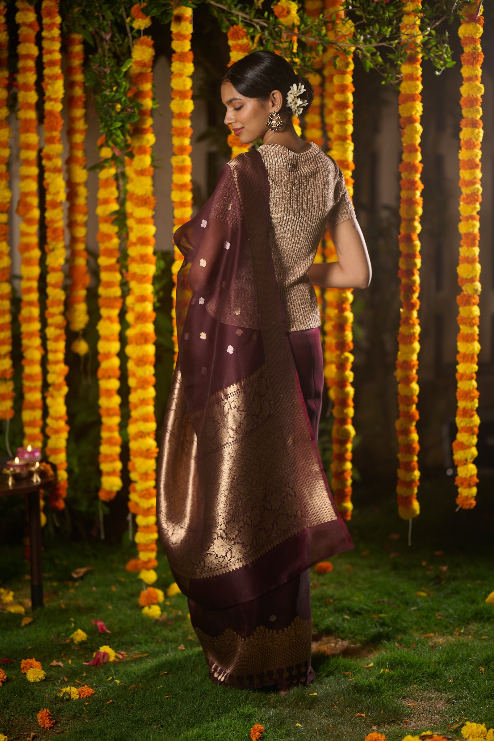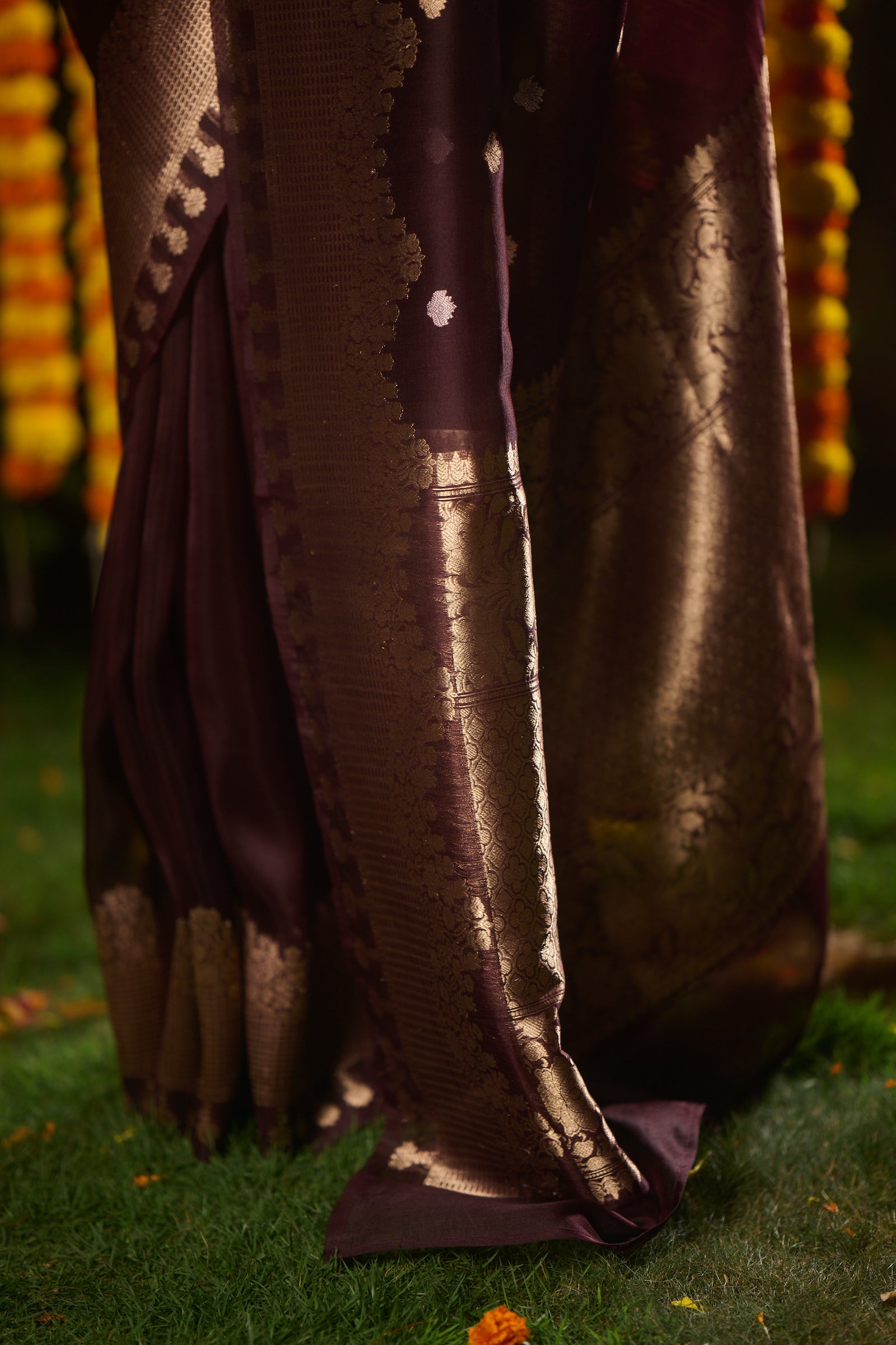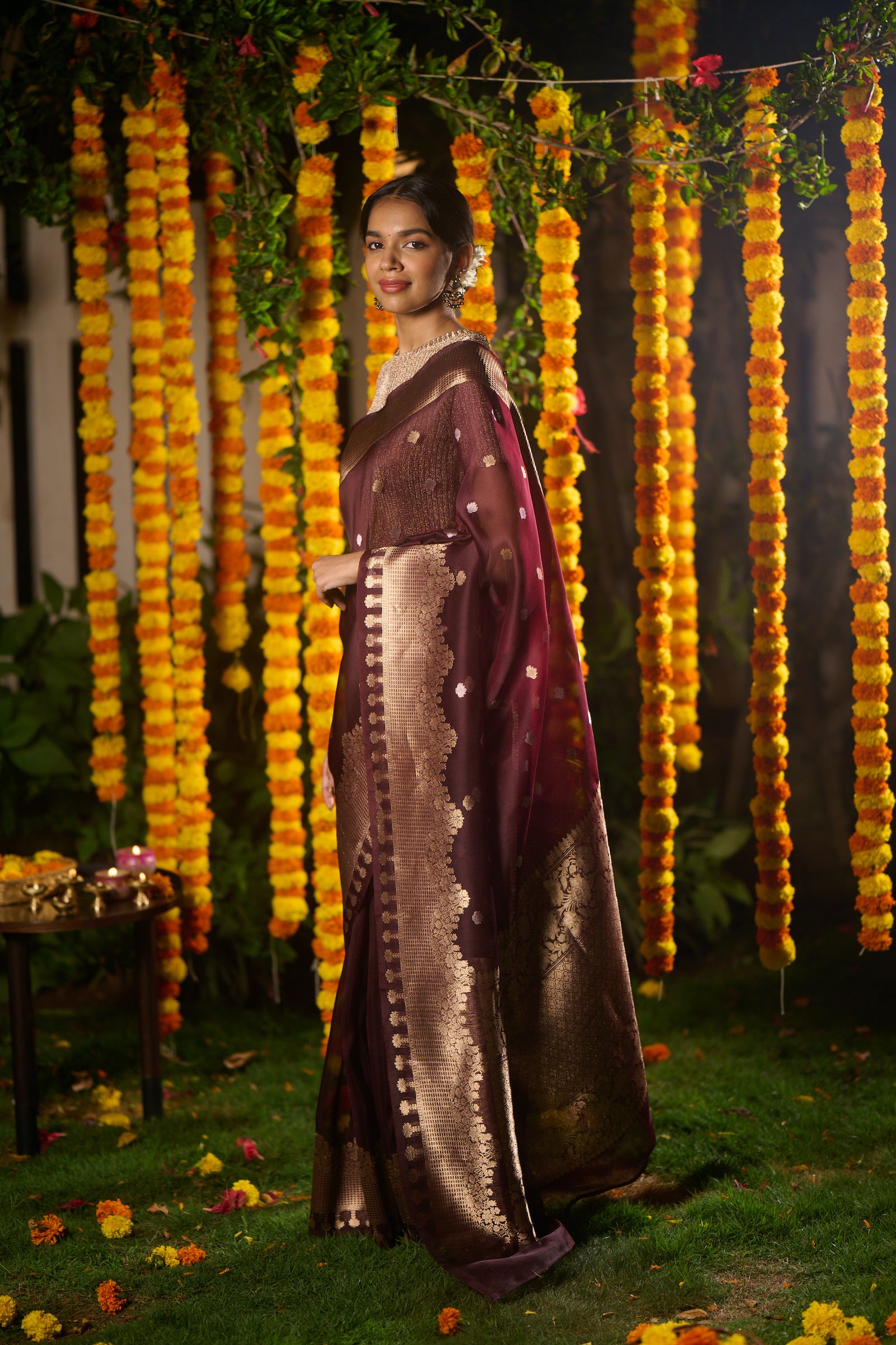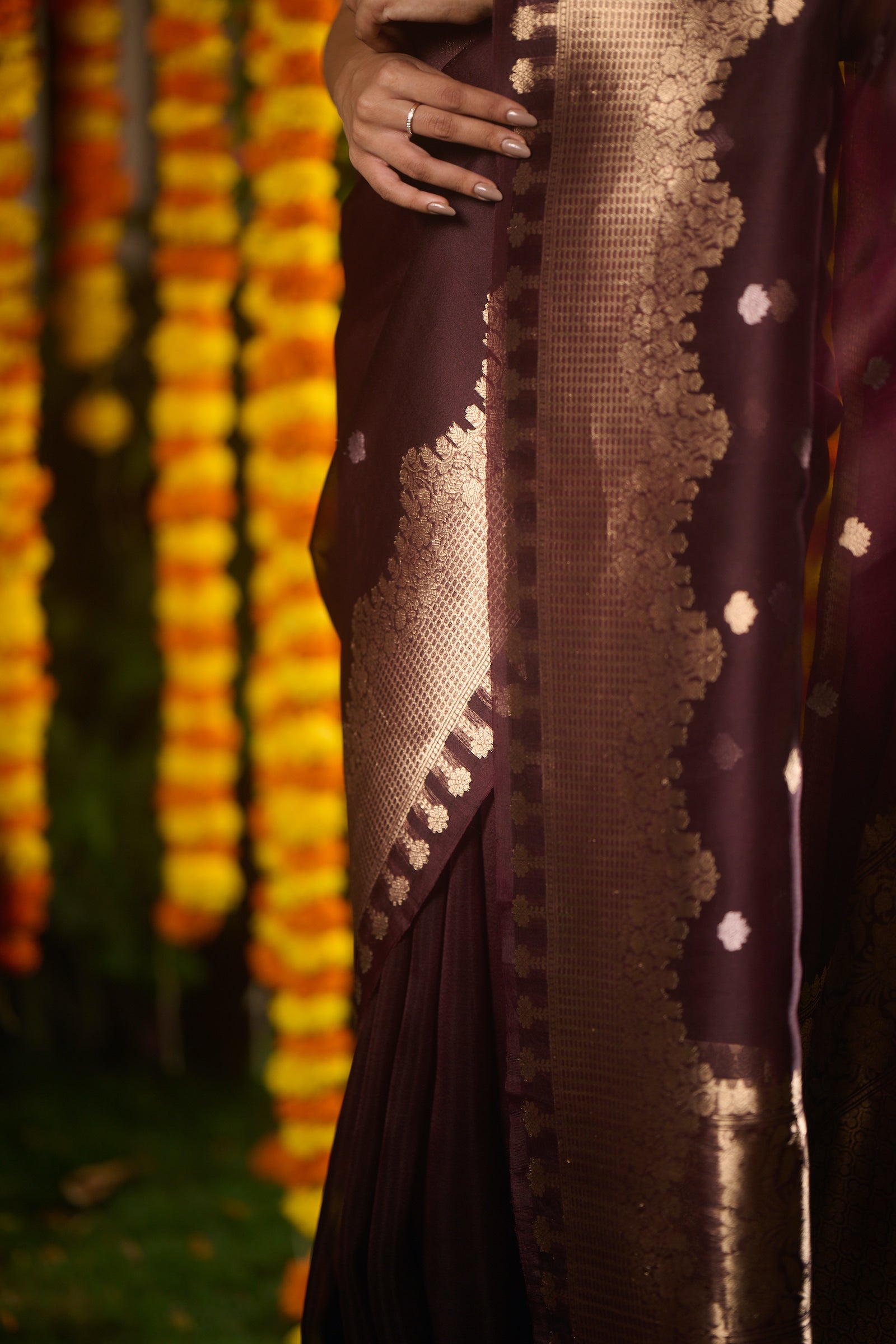 Banarasi organza silk brown saree