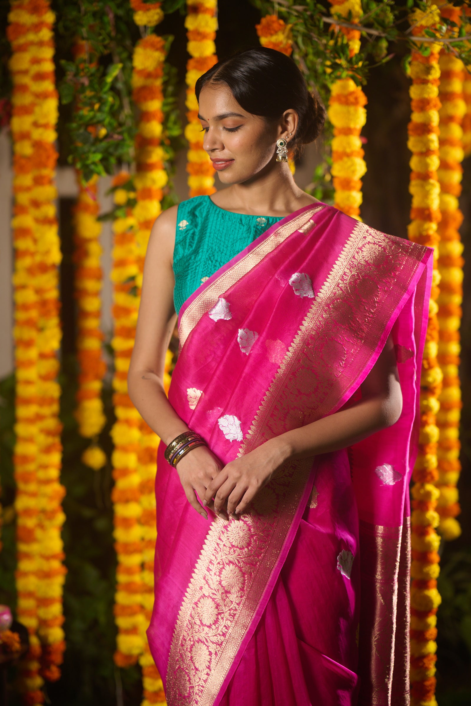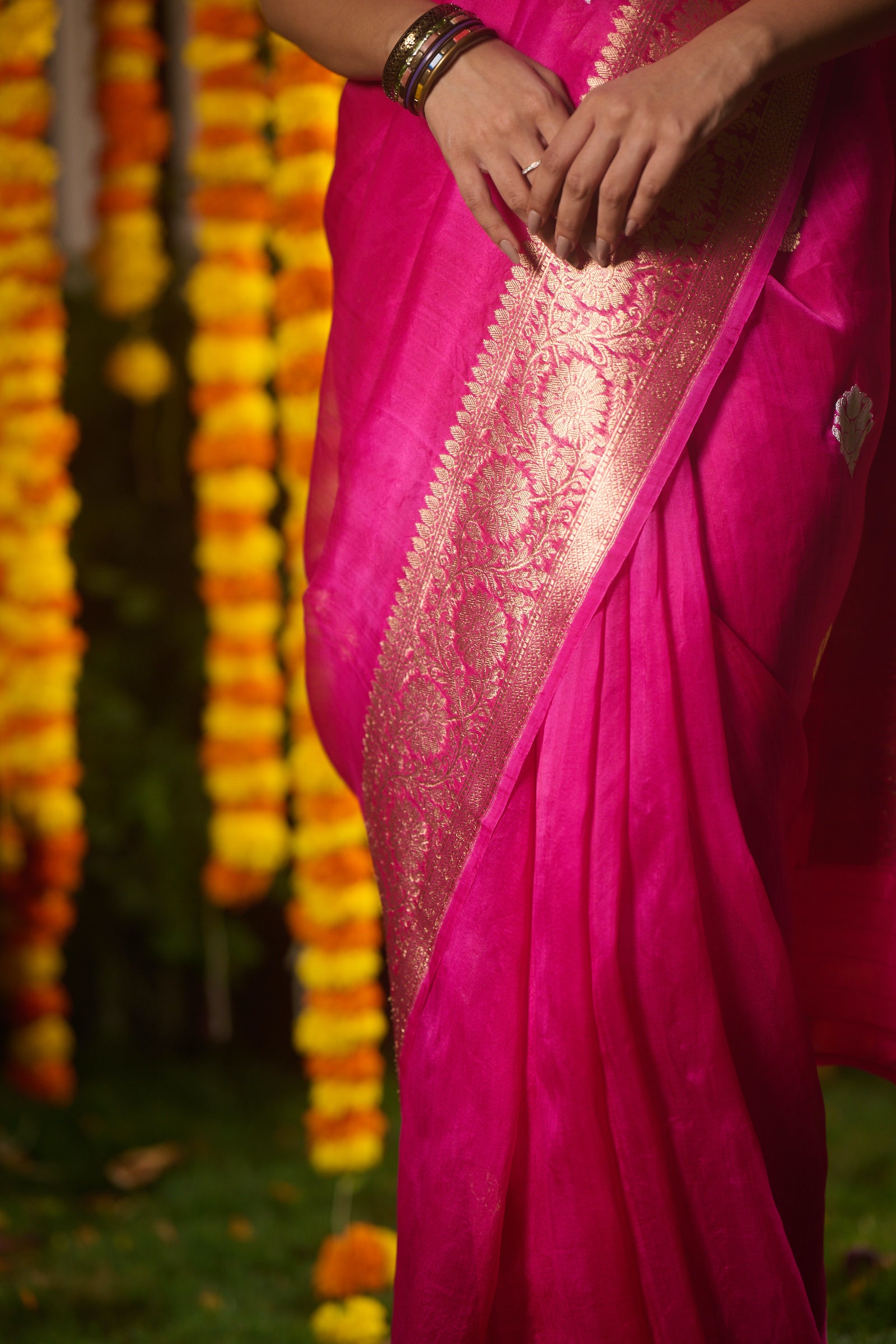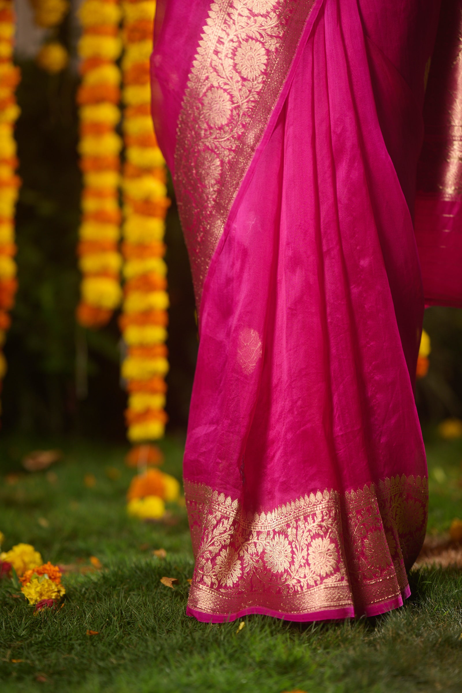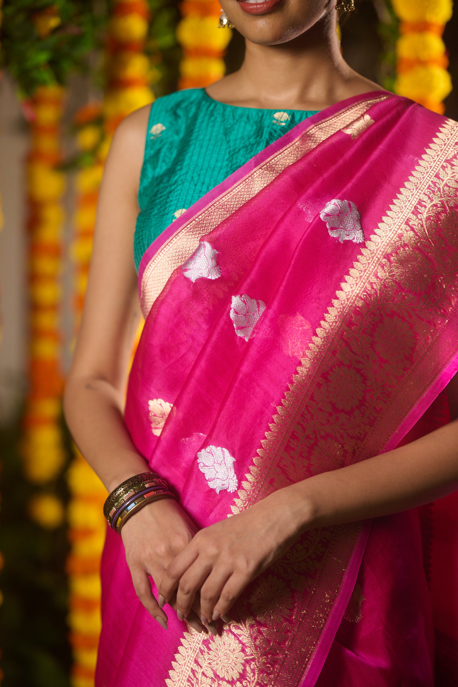 Banarasi organza silk hot pink saree