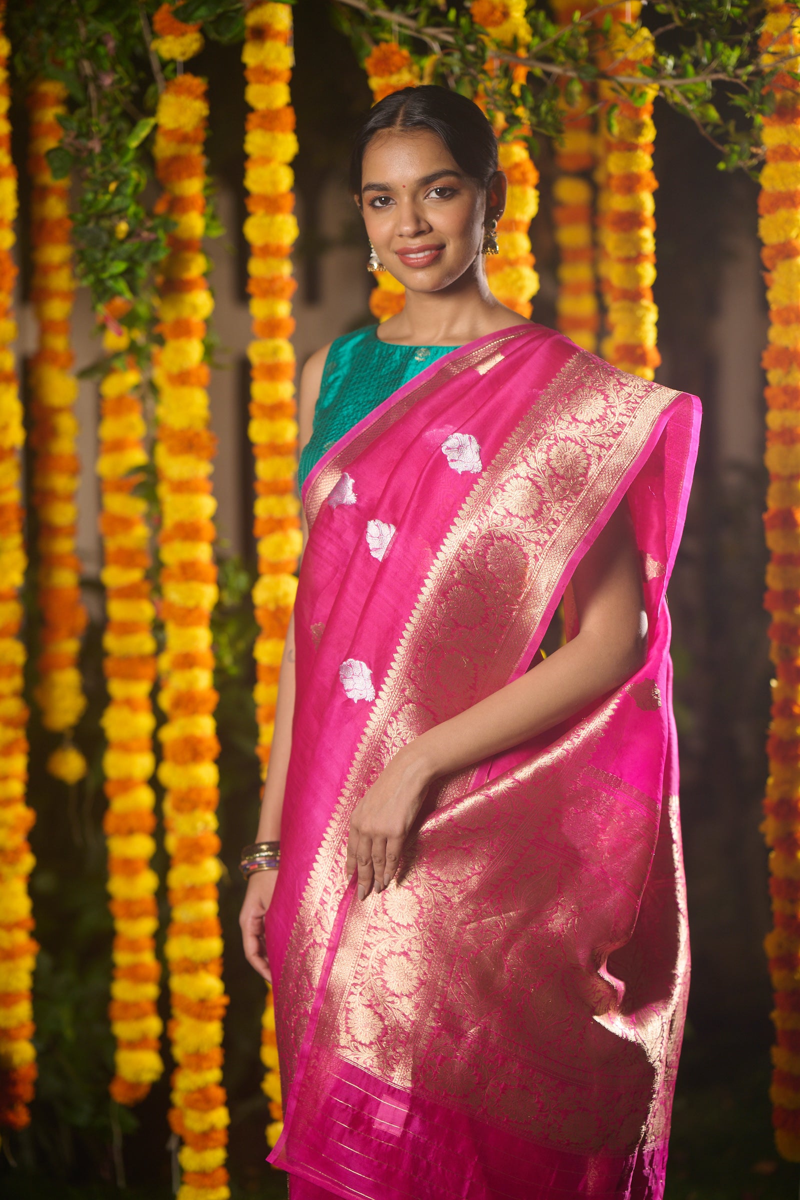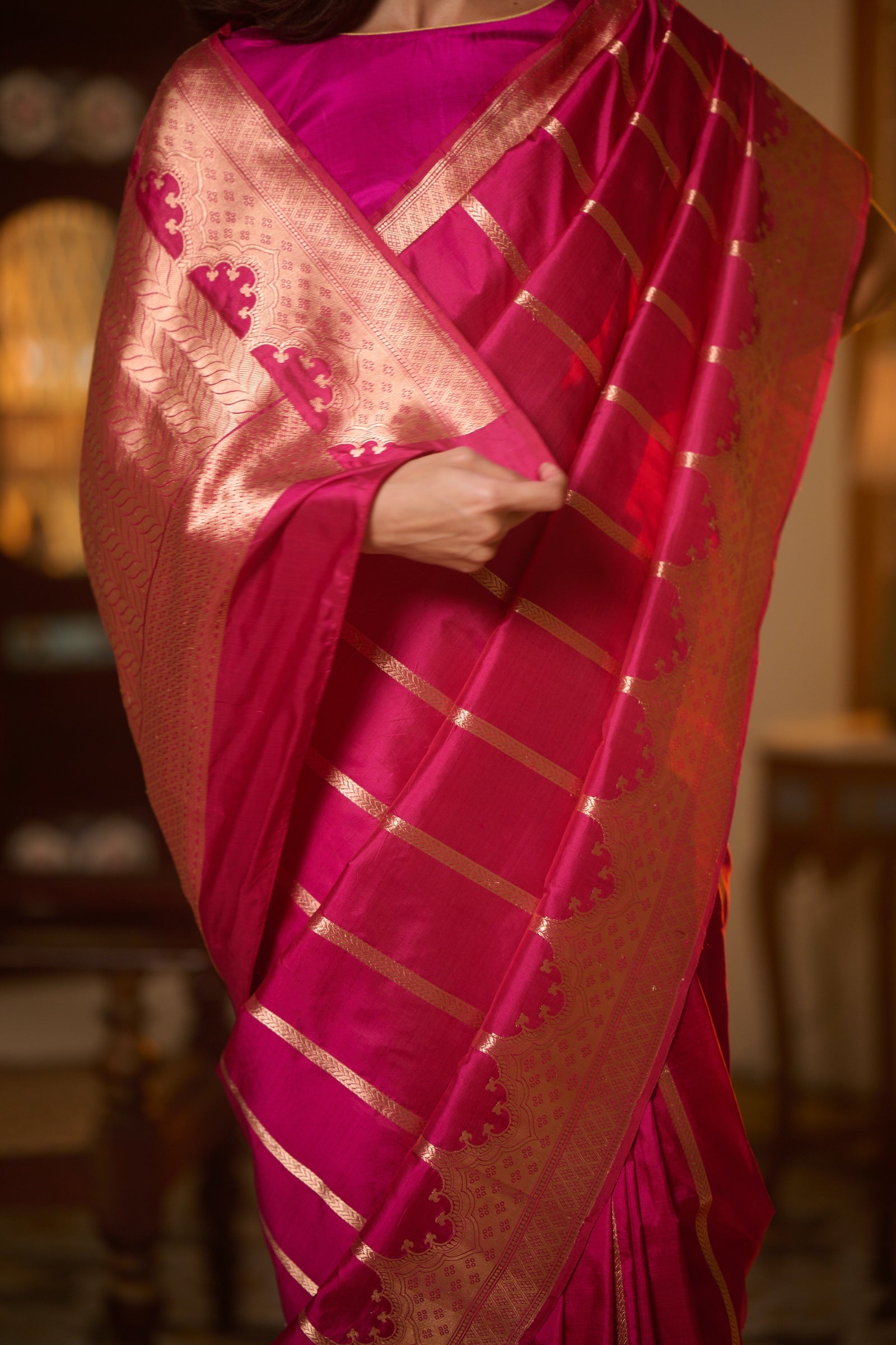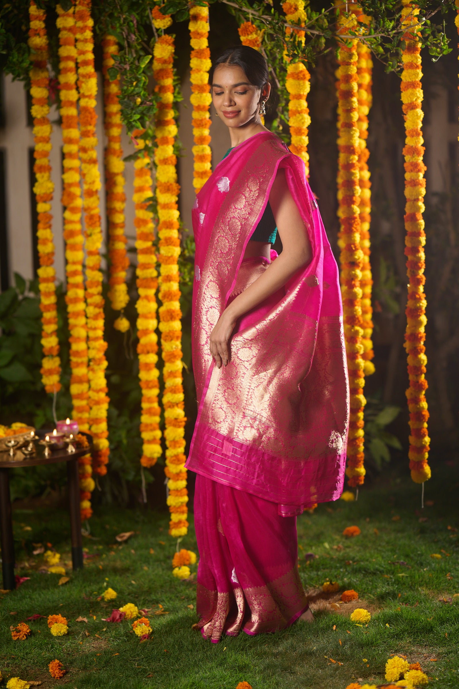 Banarasi organza silk hot pink saree