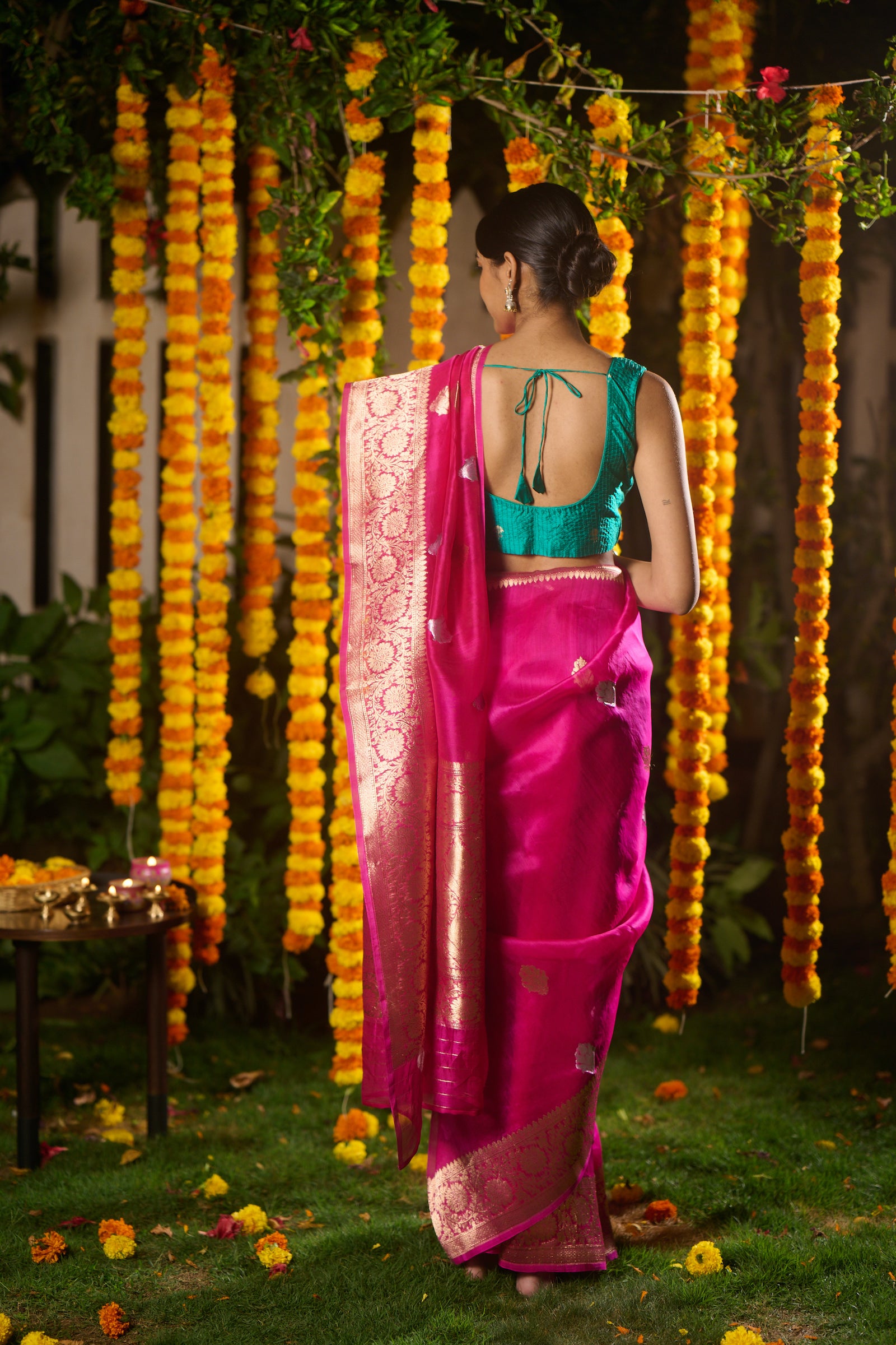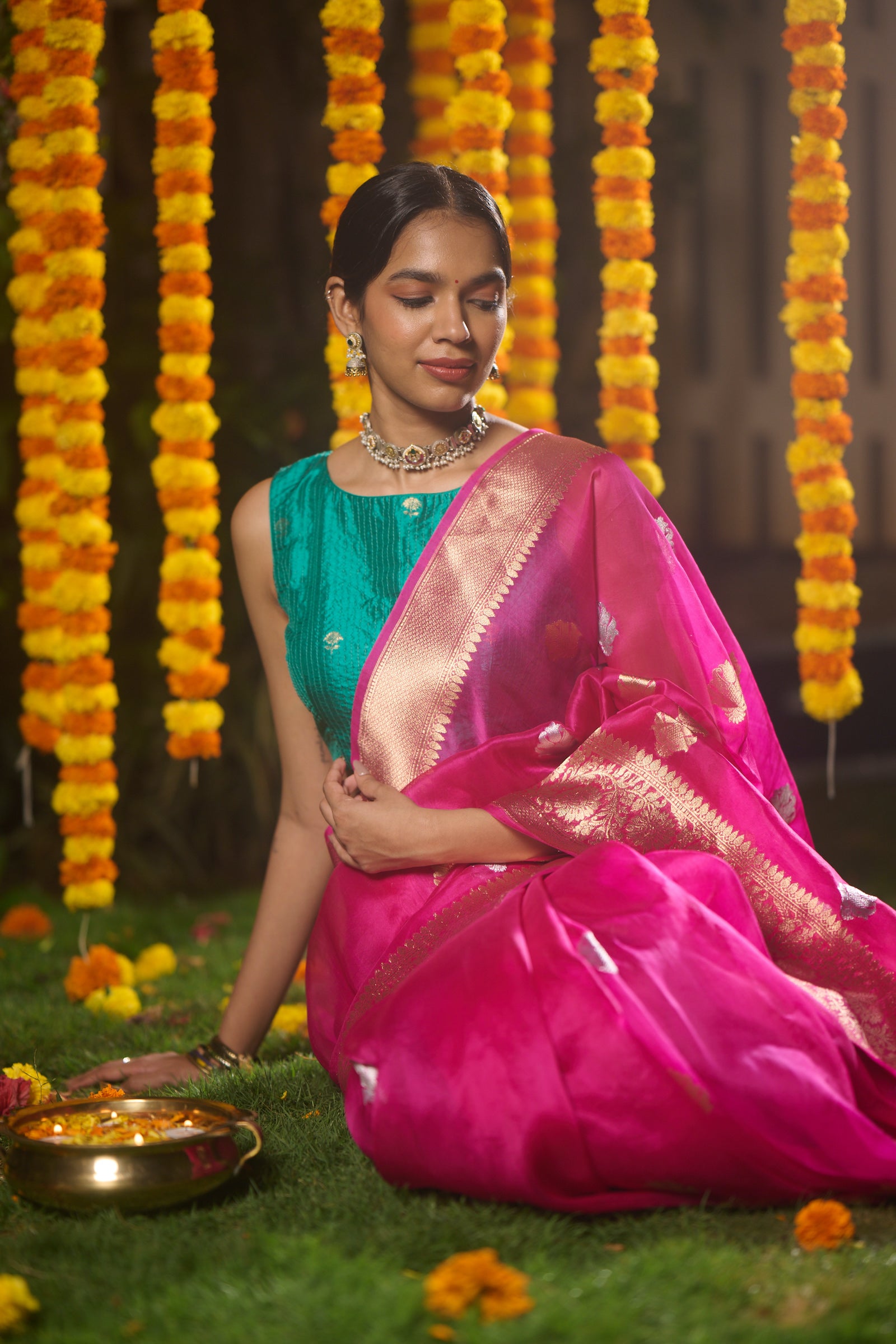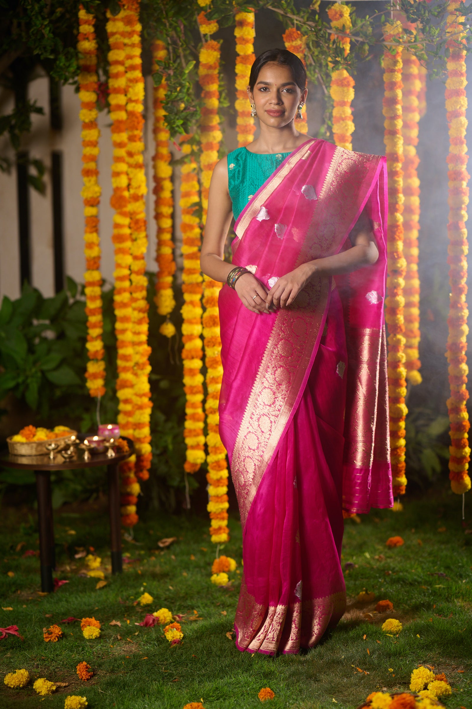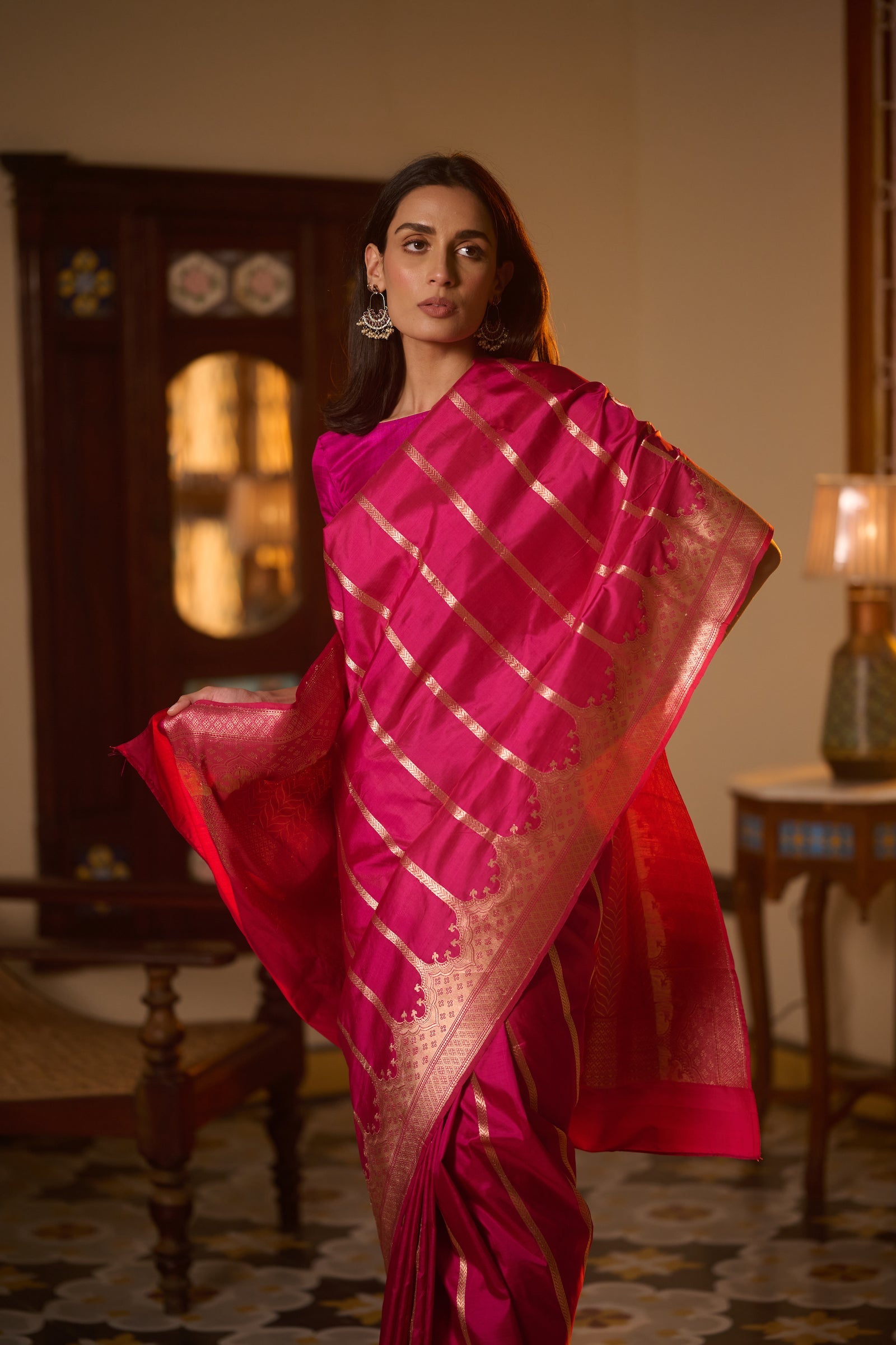 Banarasi organza silk hot pink saree