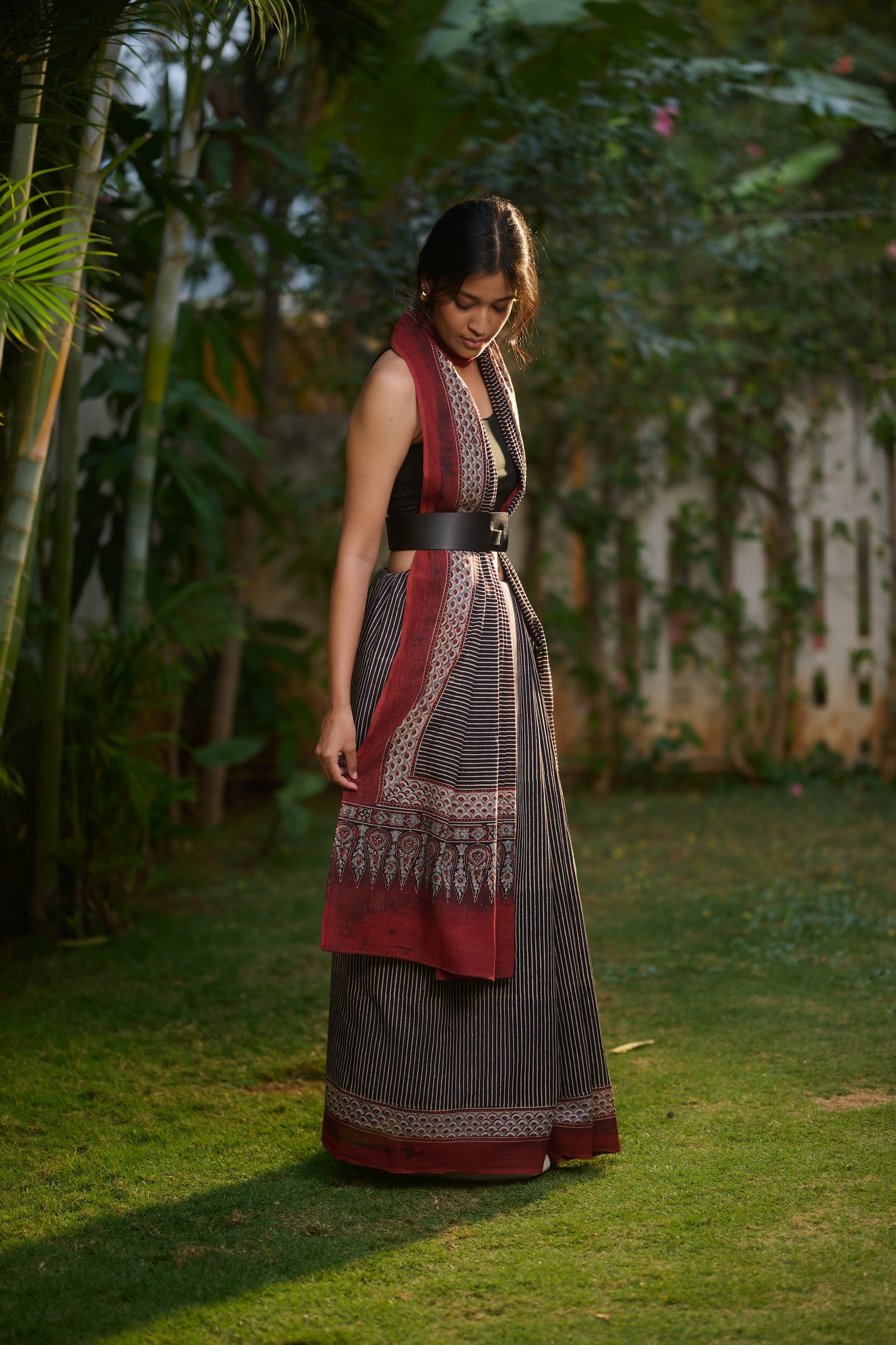 Ajrakh black mul cotton saree