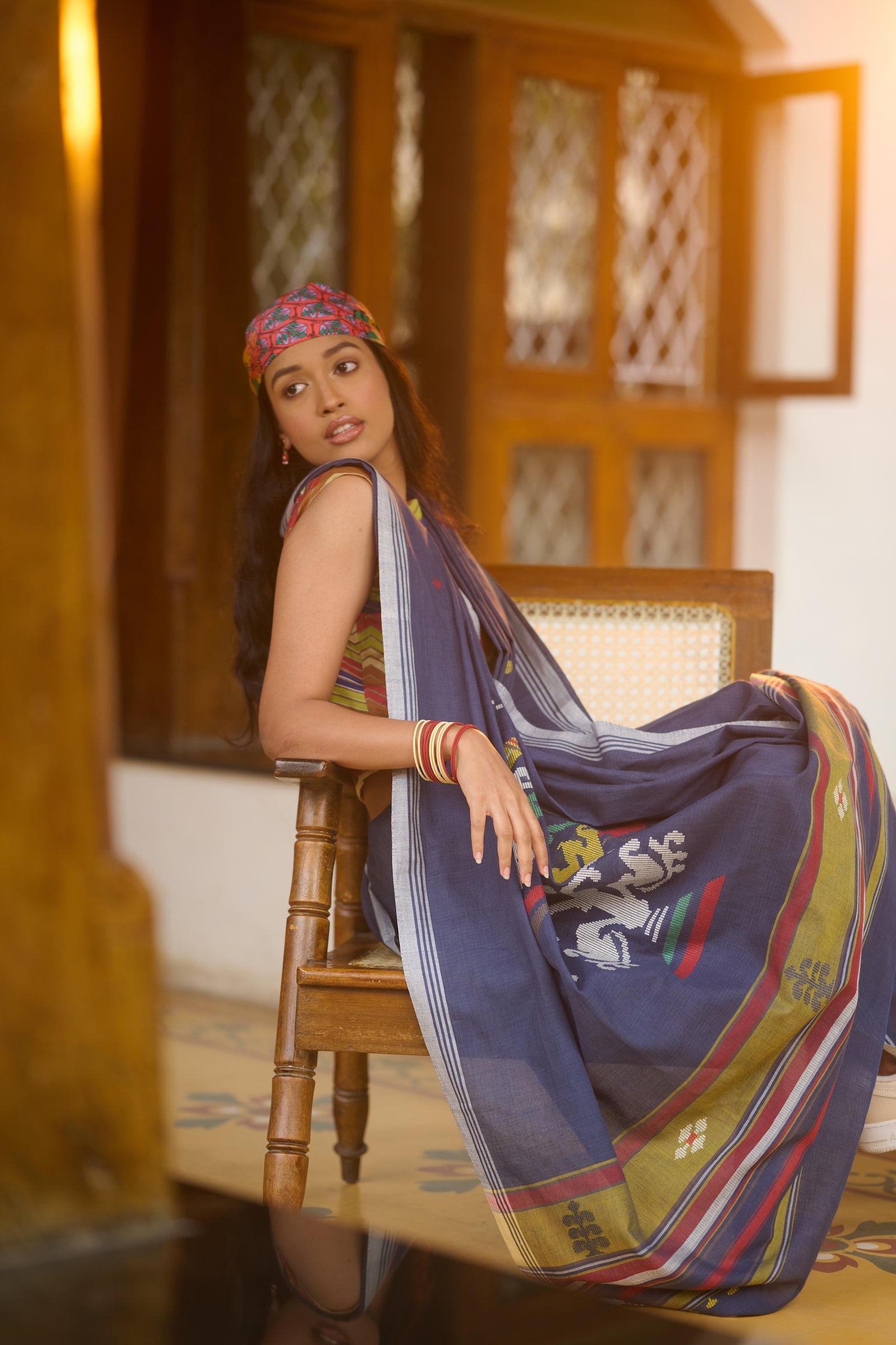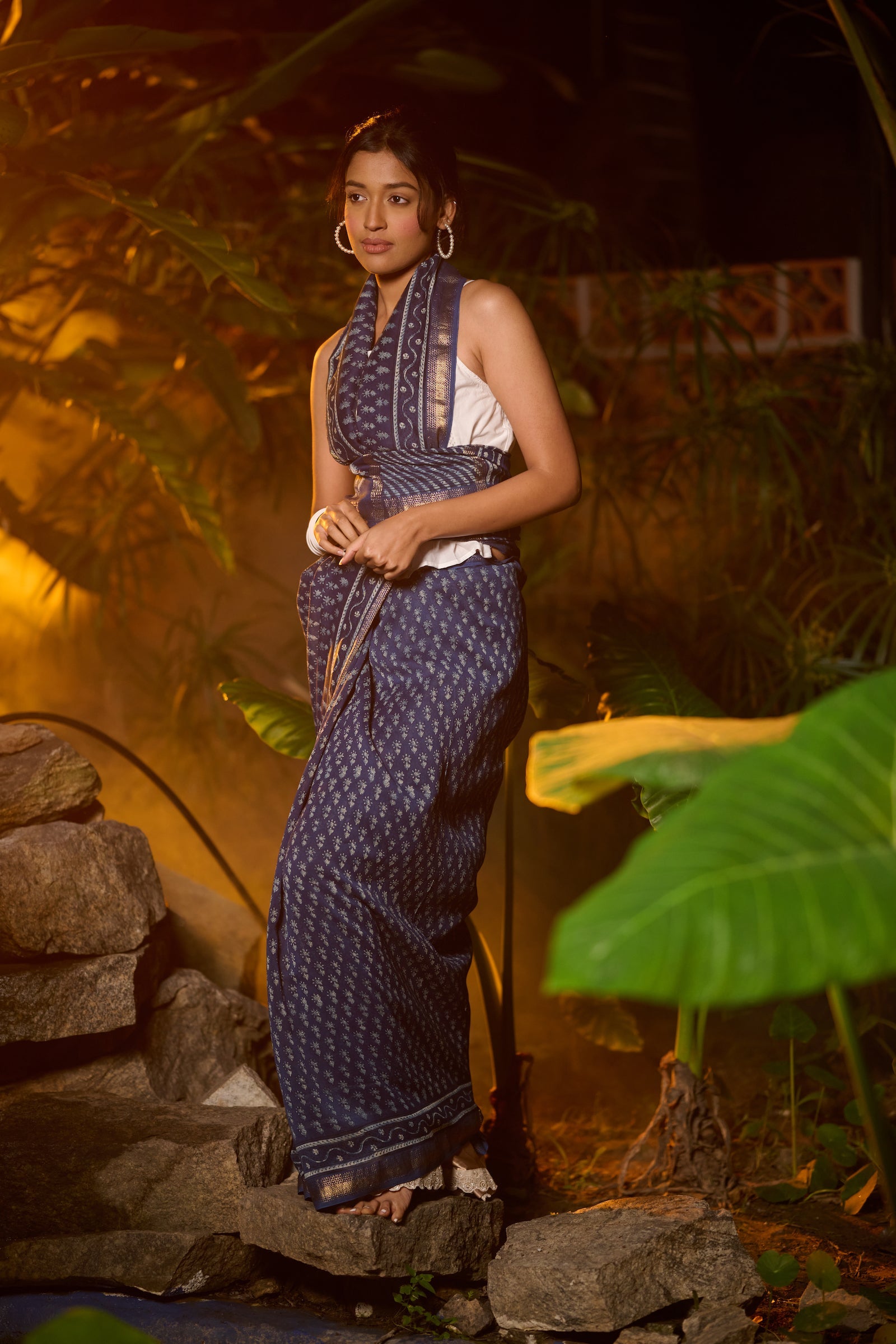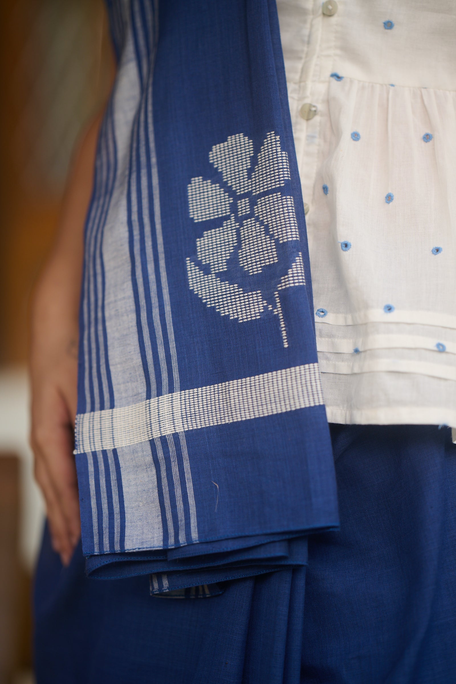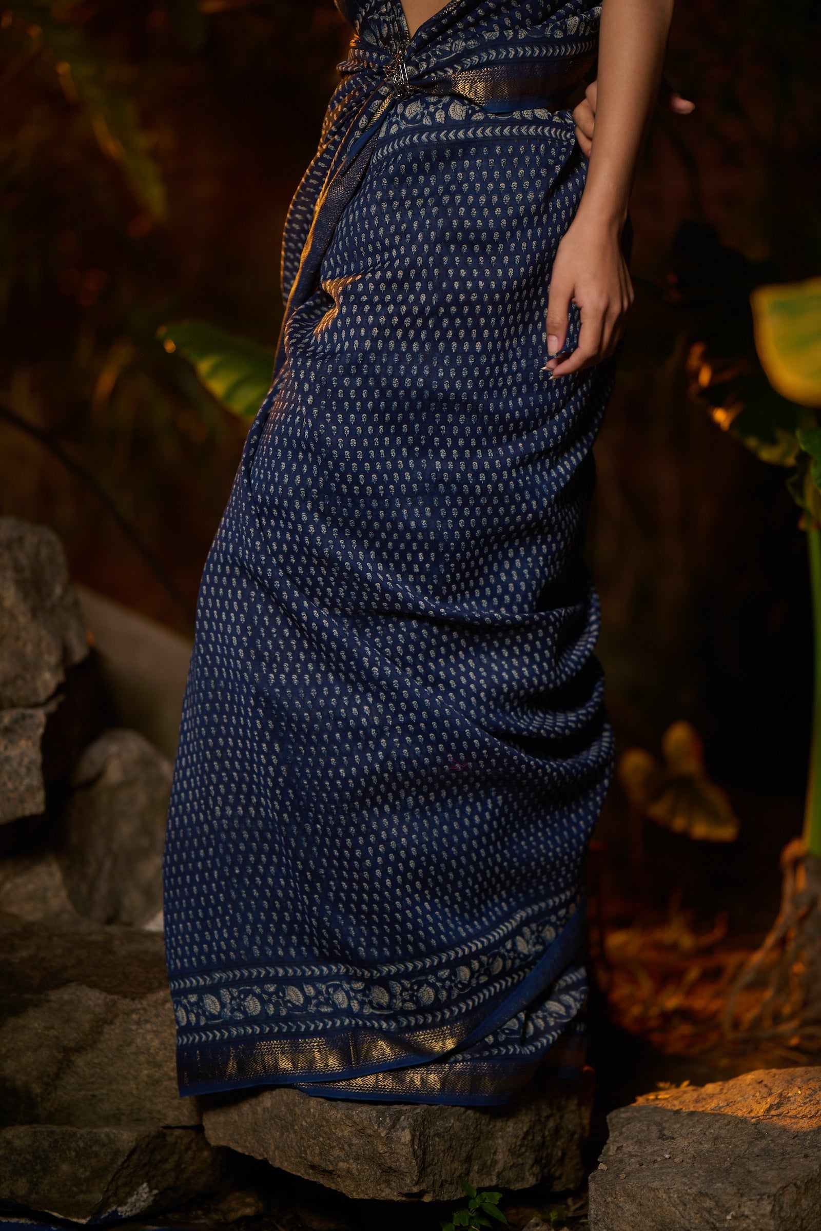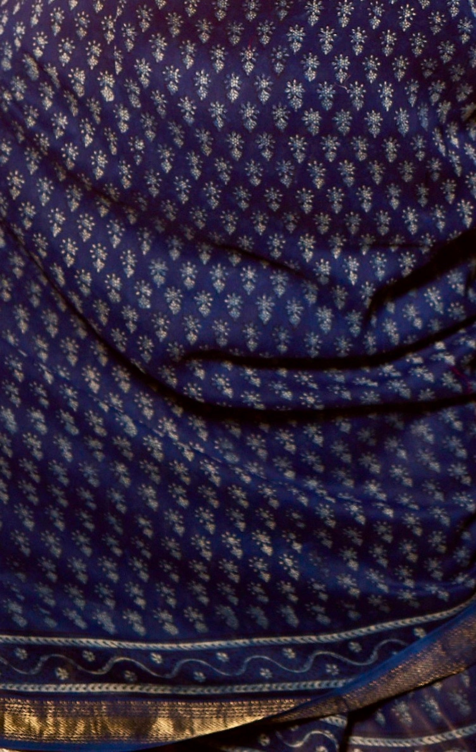 Bagru print indigo Maheshwari saree