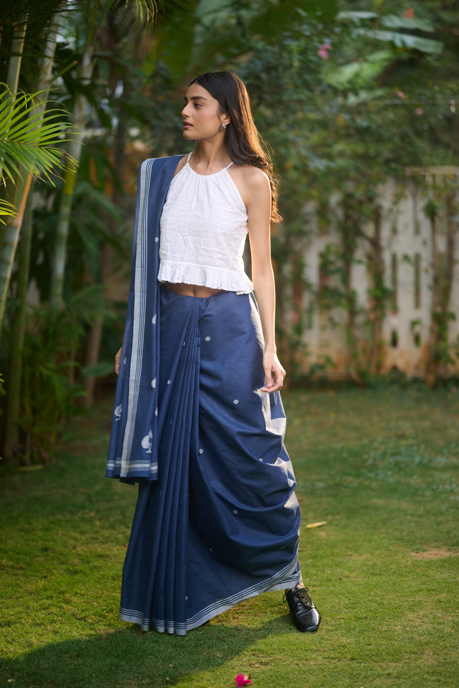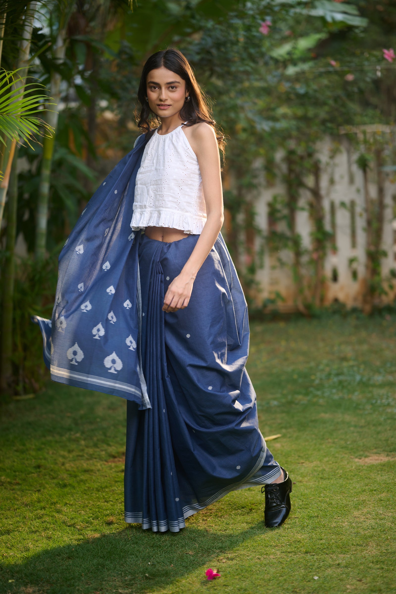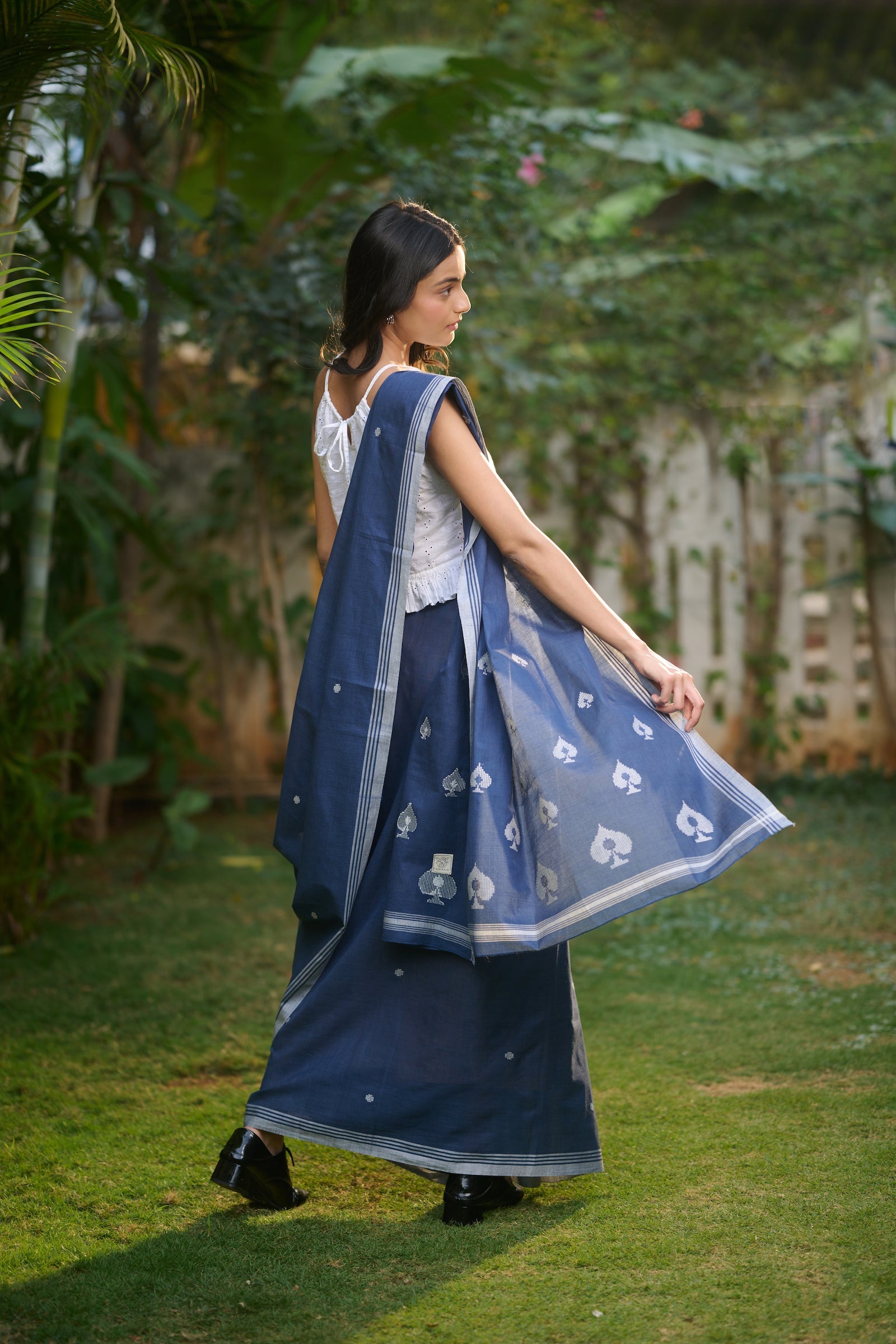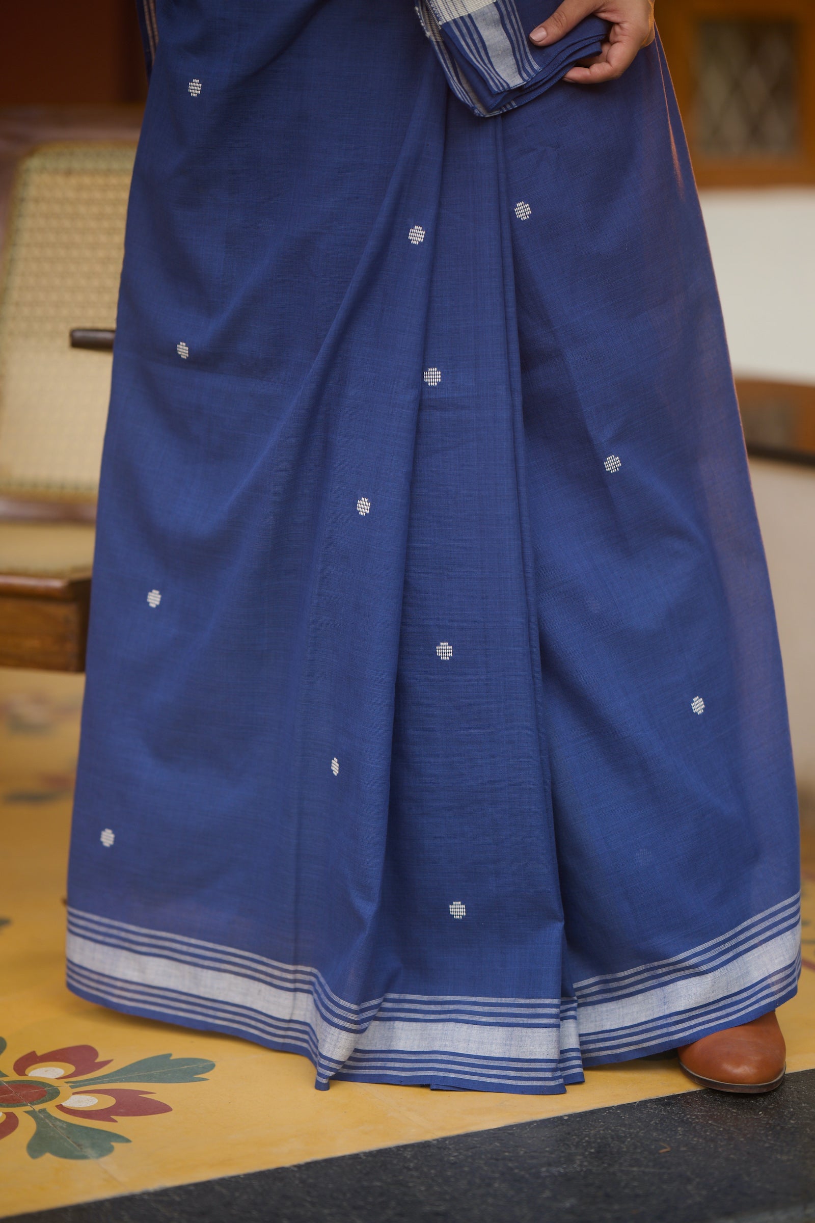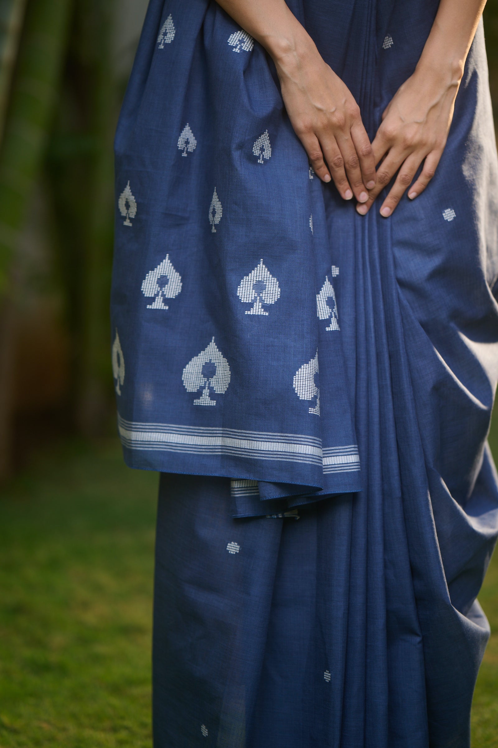 Baawan buti indigo cotton saree