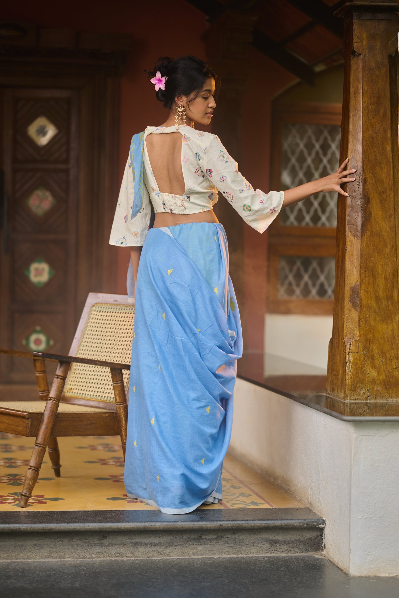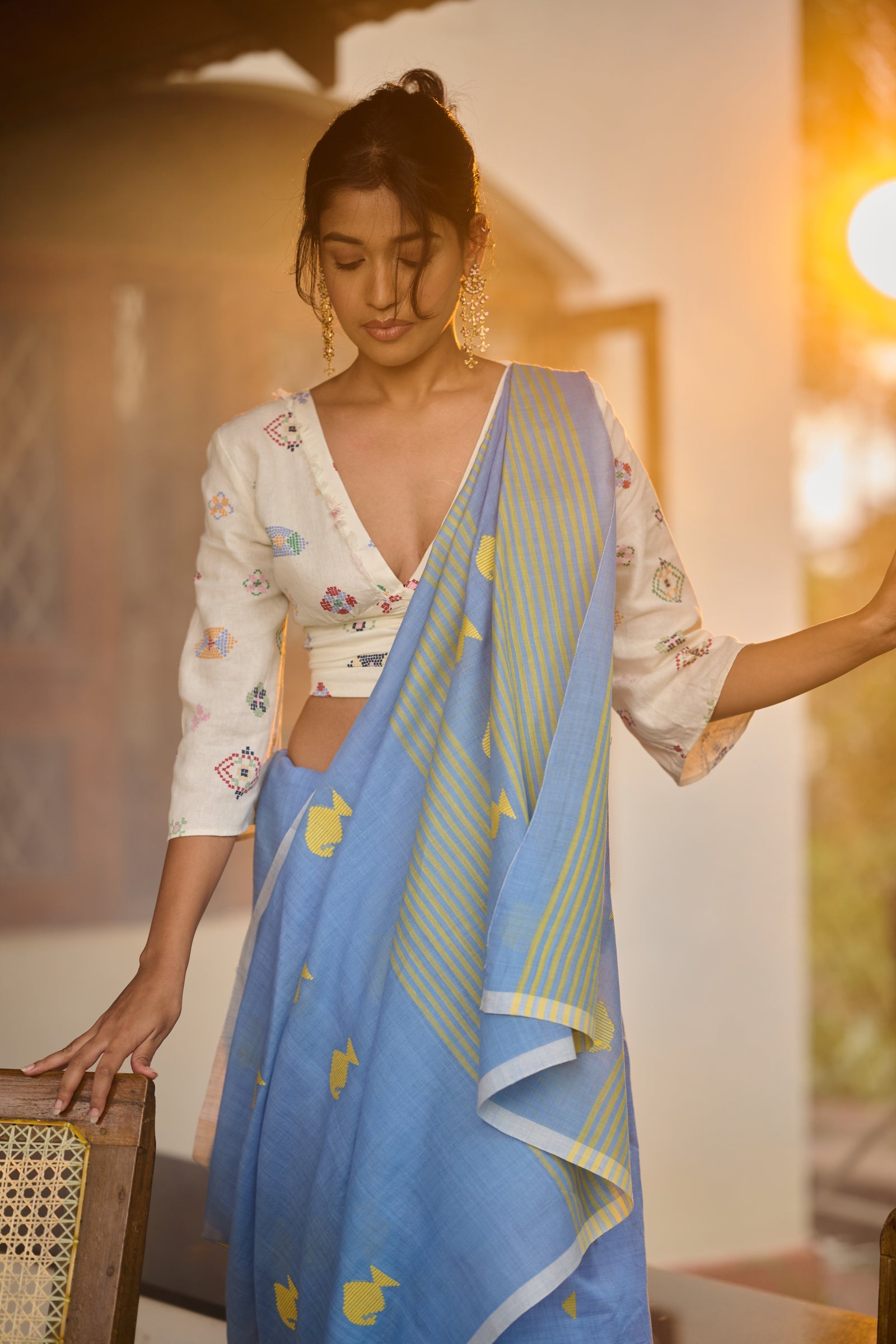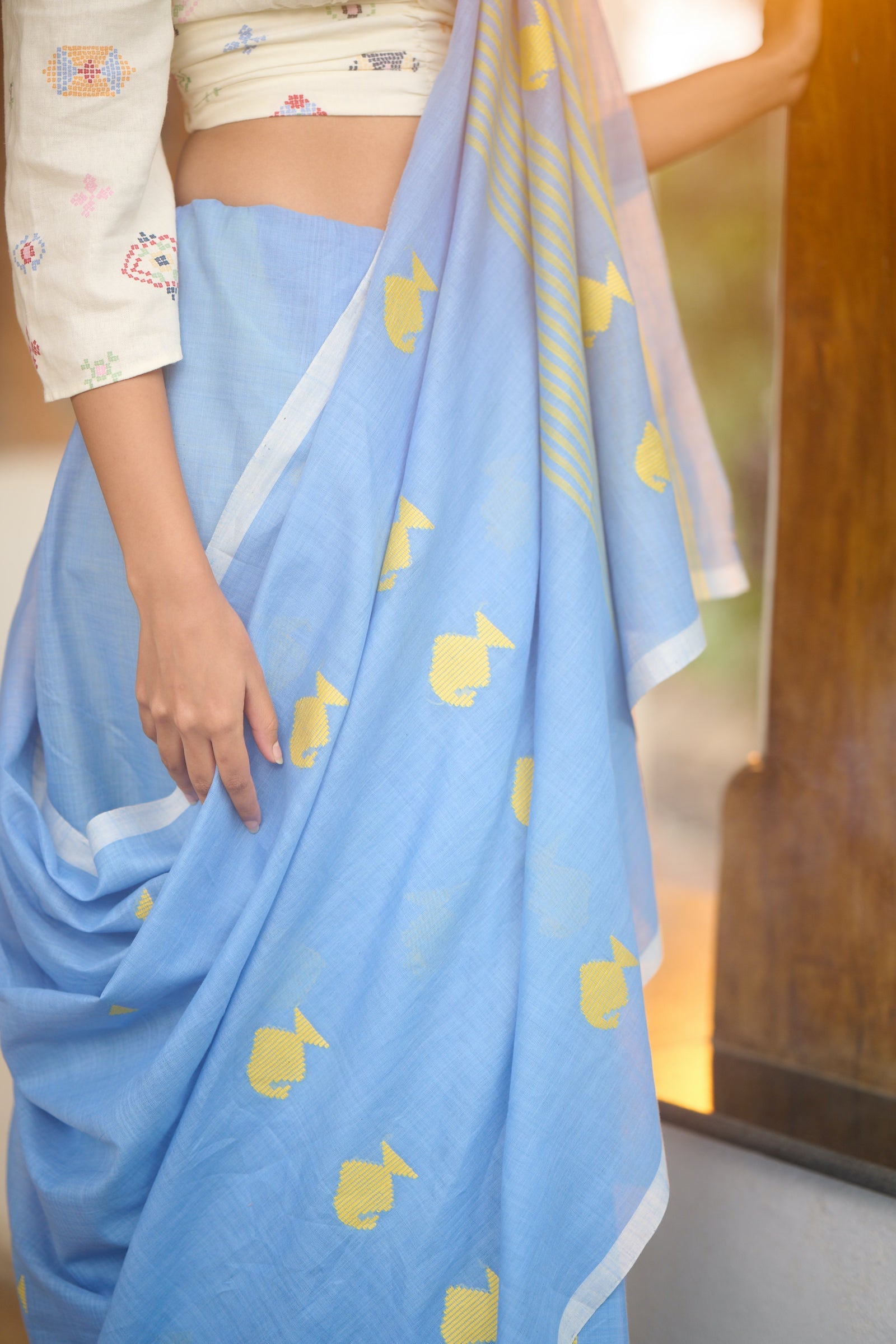 Baawan buti blue cotton saree