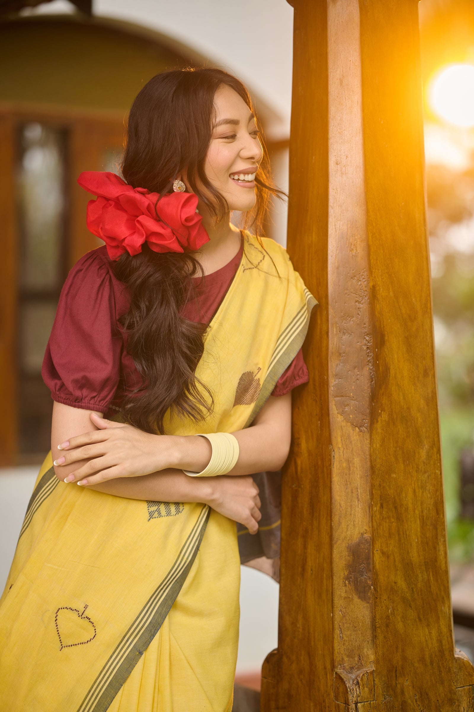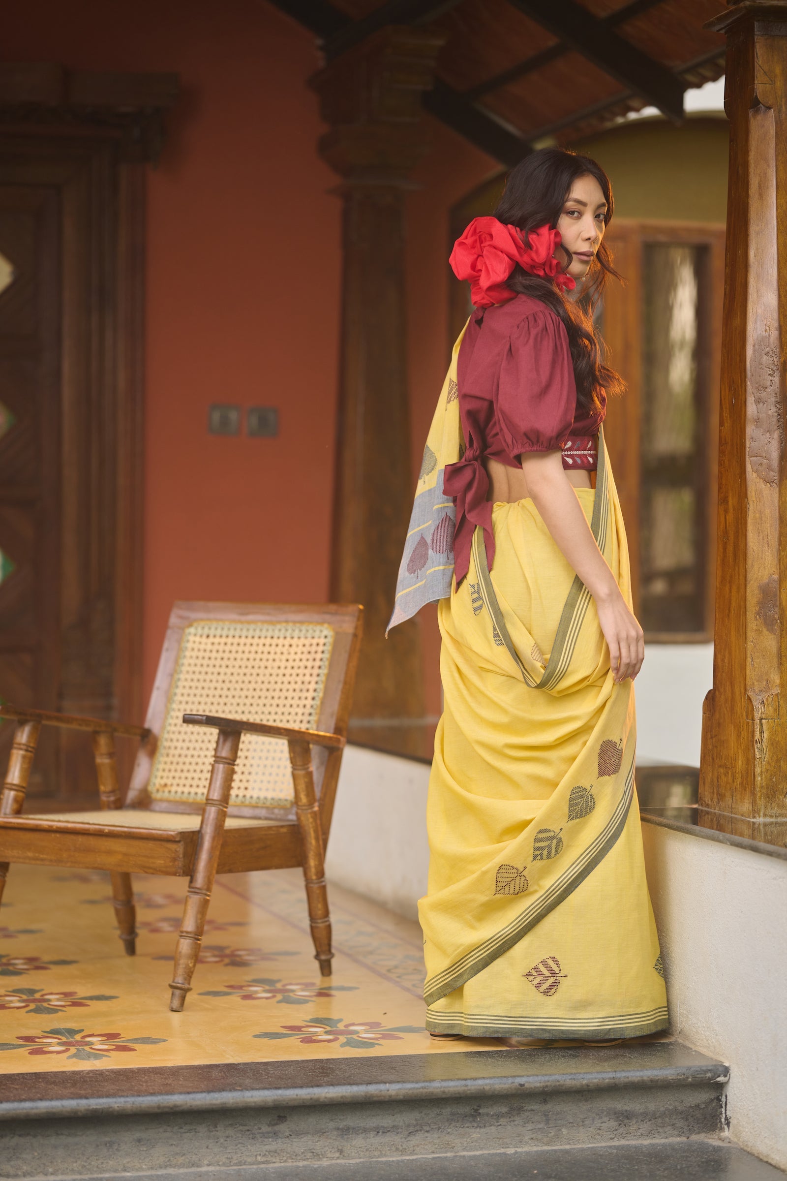 Ajrakh maroon mul cotton saree