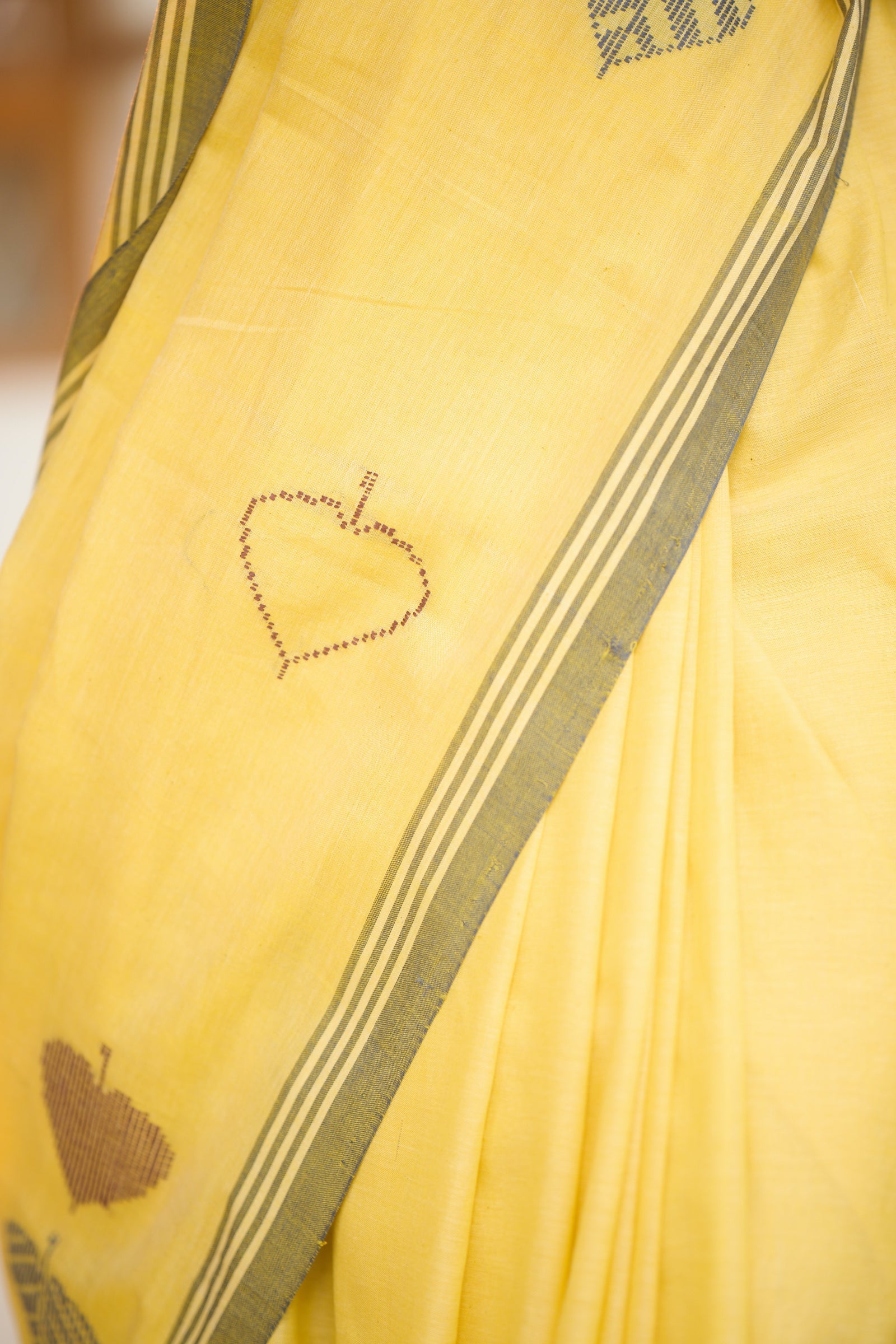 Baawan buti yellow and blue cotton saree