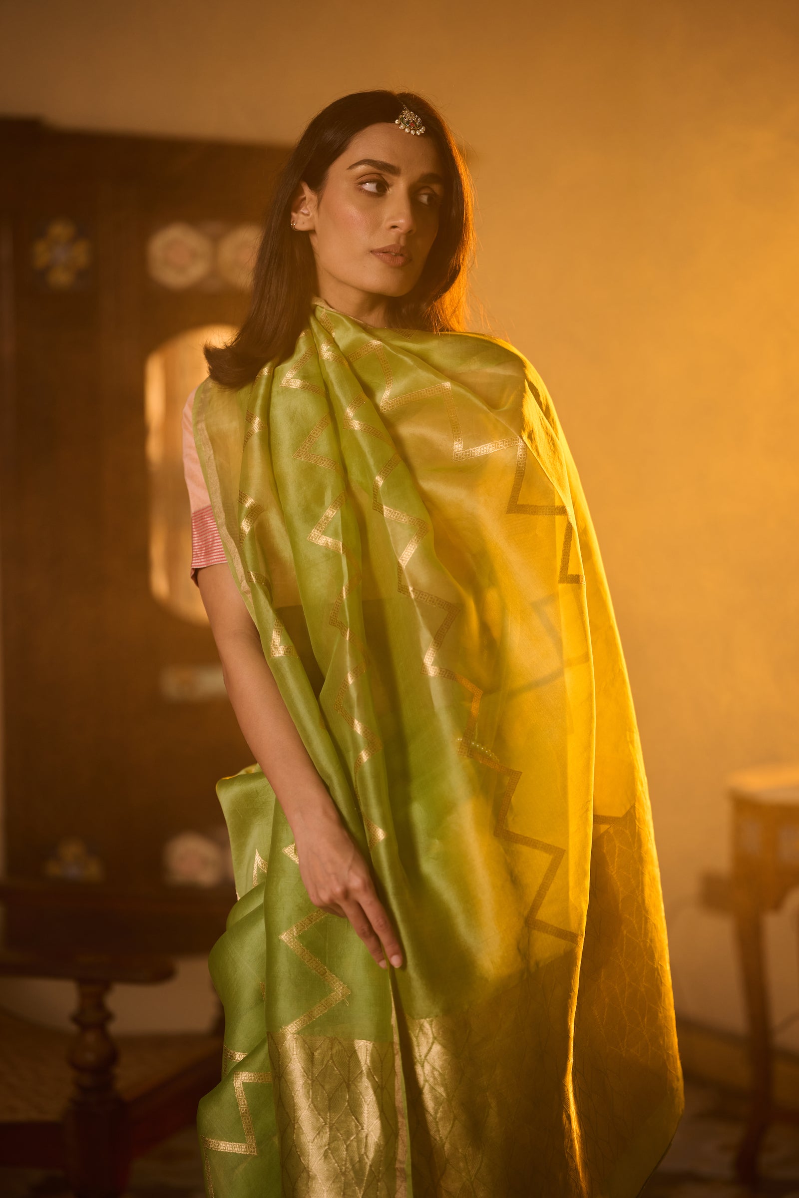 Banarasi organza silk green saree