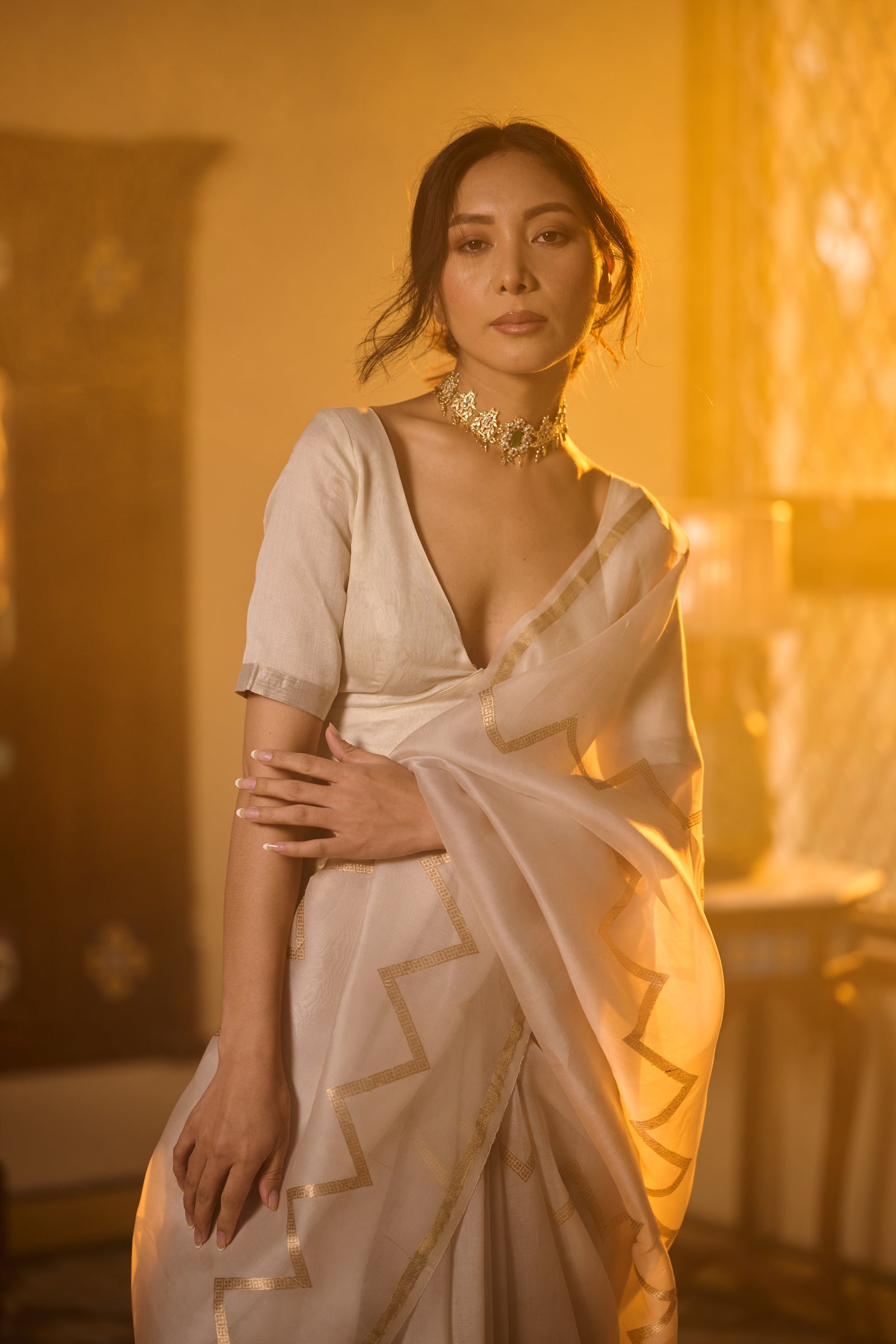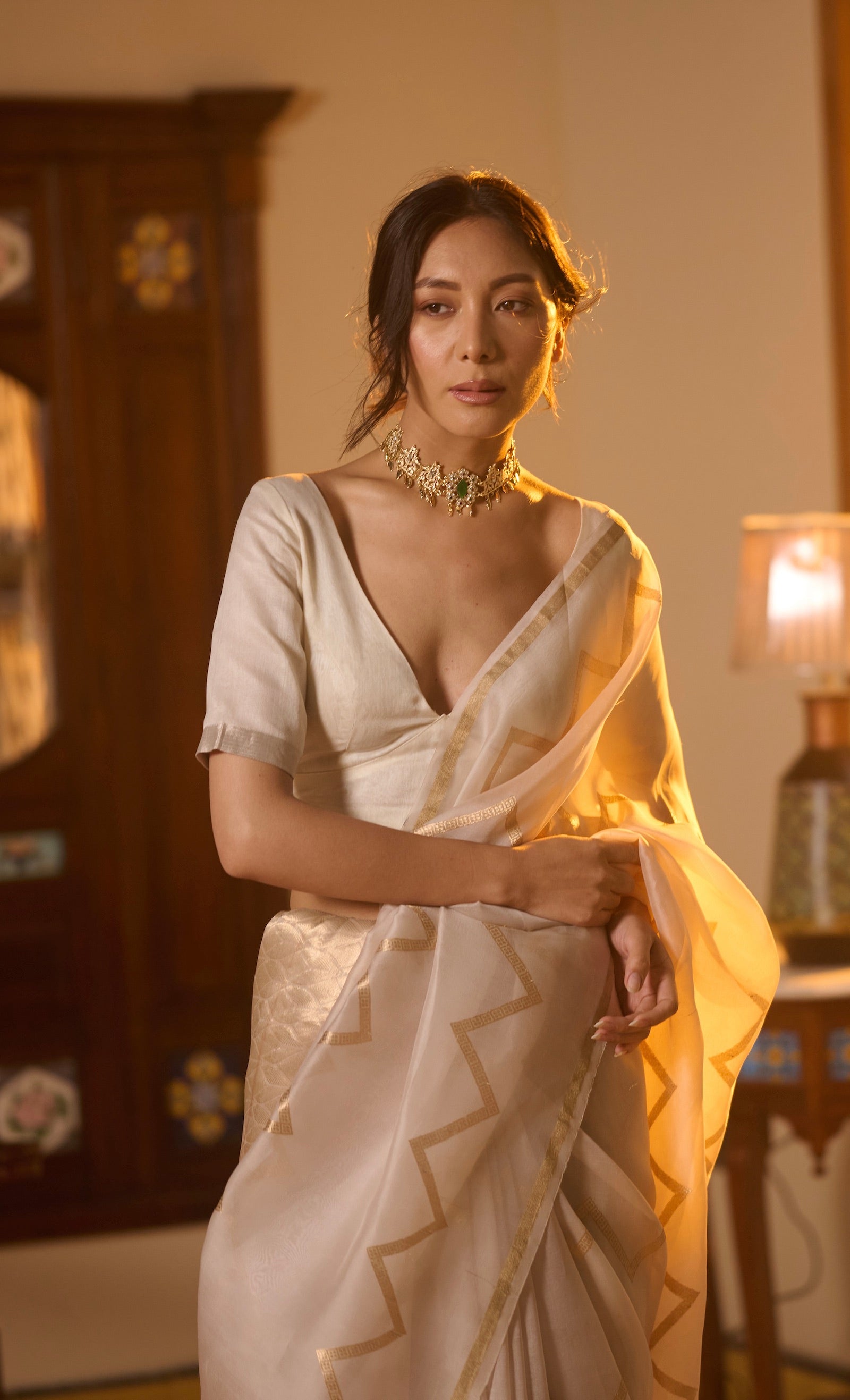 Banarasi organza silk white saree