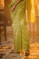 Elevate your style with our Banarasi Organza Silk Green Chevron Pattern Handwoven Saree, a true embodiment of artisanal craftsmanship and elegance. Meticulously handwoven from premium Banarasi silk, this saree offers both luxurious comfort and exquisite style. The refreshing green hue, paired with the intricate chevron pattern, creates a mesmerizing visual appeal that is sure to turn heads. Whether you're attending a formal event or a casual gathering, this saree effortlessly enhances your style with its understated allure. Embrace the timeless beauty of handwoven Banarasi silk and make a statement with our Banarasi Organza Silk Green Chevron Pattern Handwoven Saree.