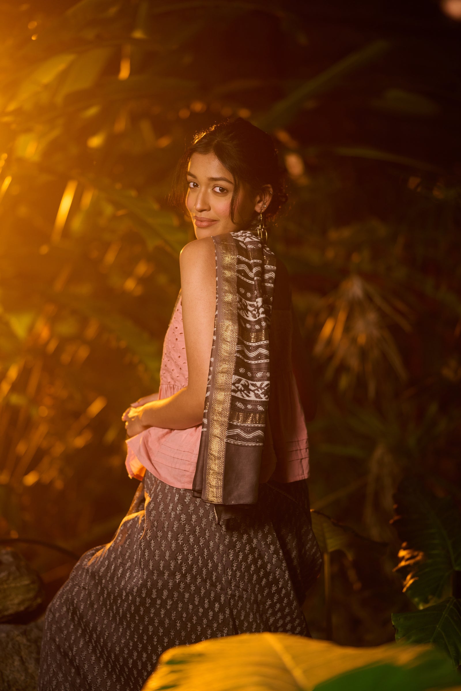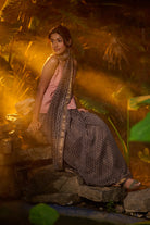 Bagru print grey Maheshwari saree