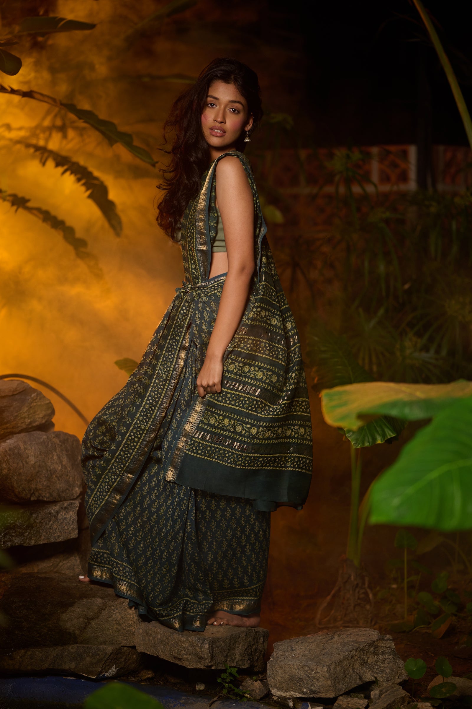 Introducing our latest addition, the Bagru Print Green Maheshwari Saree, a fusion of traditional artistry and contemporary fashion. Handcrafted with precision, this saree boasts vibrant green hues and intricate Bagru prints, making it a versatile choice for any occasion. Crafted from luxurious Maheshwari fabric, it offers both comfort and style. Whether you're attending a cultural event or a casual outing, this saree effortlessly elevates your look with its timeless charm. Embrace the allure of Indian heritage with our Bagru Print Green Maheshwari Saree today!