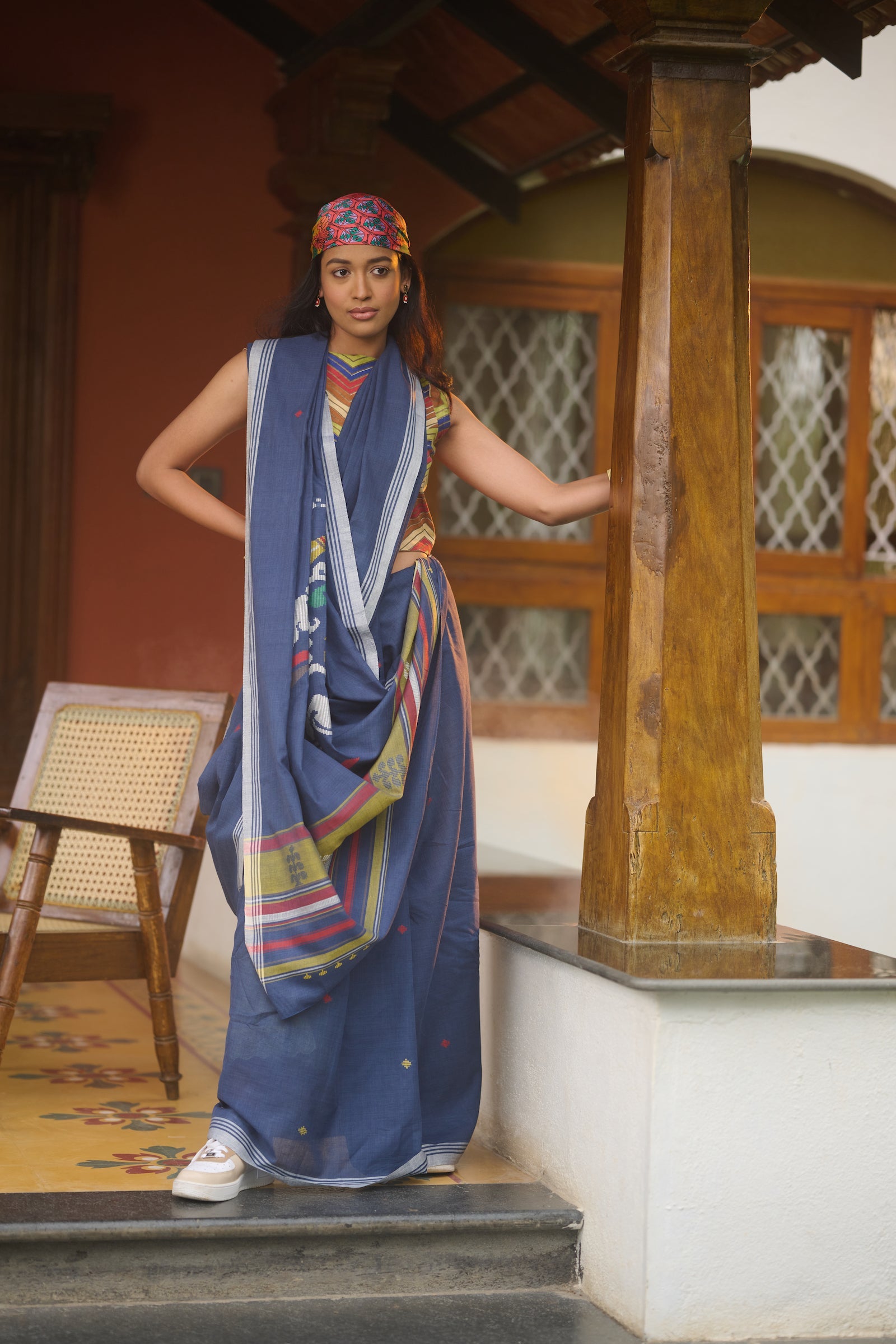 Adorn yourself in elegance with our Navy Blue Cotton Baawan Buti Saree, a symbol of timeless grace and traditional craftsmanship. Crafted from premium cotton fabric, this saree exudes comfort and breathability, making it perfect for all-day wear. The intricate Baawan Buti motifs, meticulously woven into the fabric, add an aura of sophistication to the ensemble. The rich navy blue hue enhances the allure of the saree, making it a versatile choice for various occasions. Whether you're attending a formal event or a casual gathering, this saree effortlessly elevates your style with its understated elegance. Embrace the timeless charm of traditional motifs and make a statement with our Navy Blue Cotton Baawan Buti Saree.